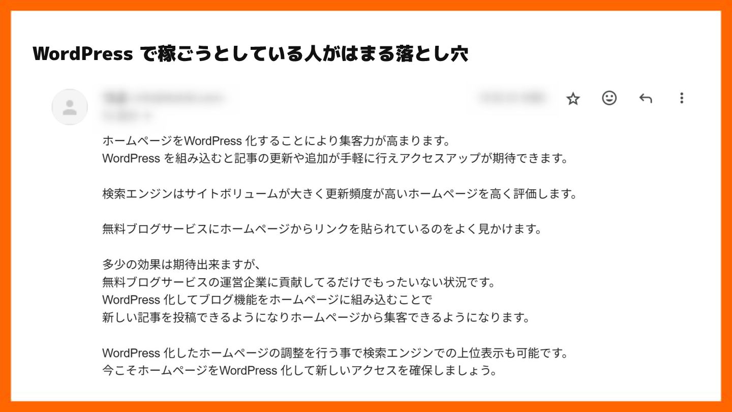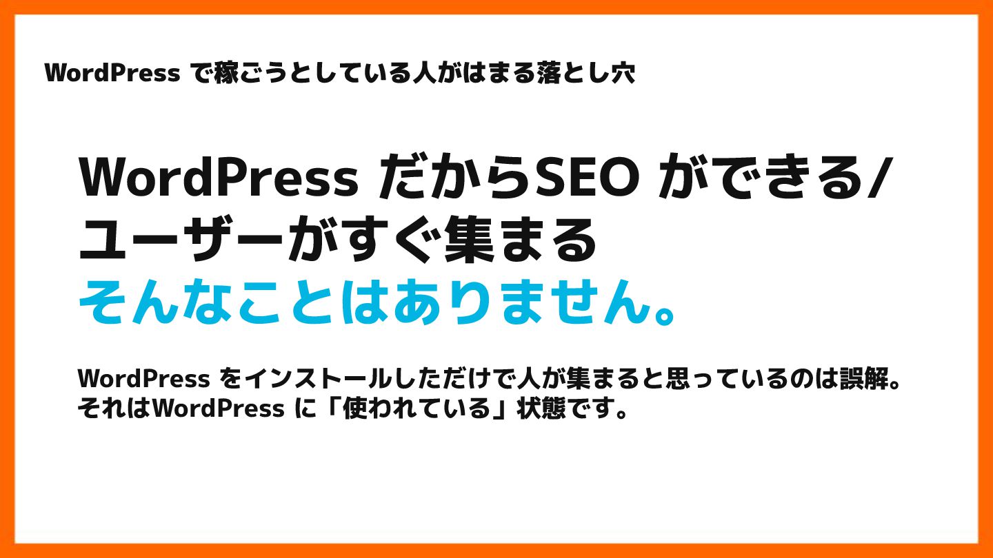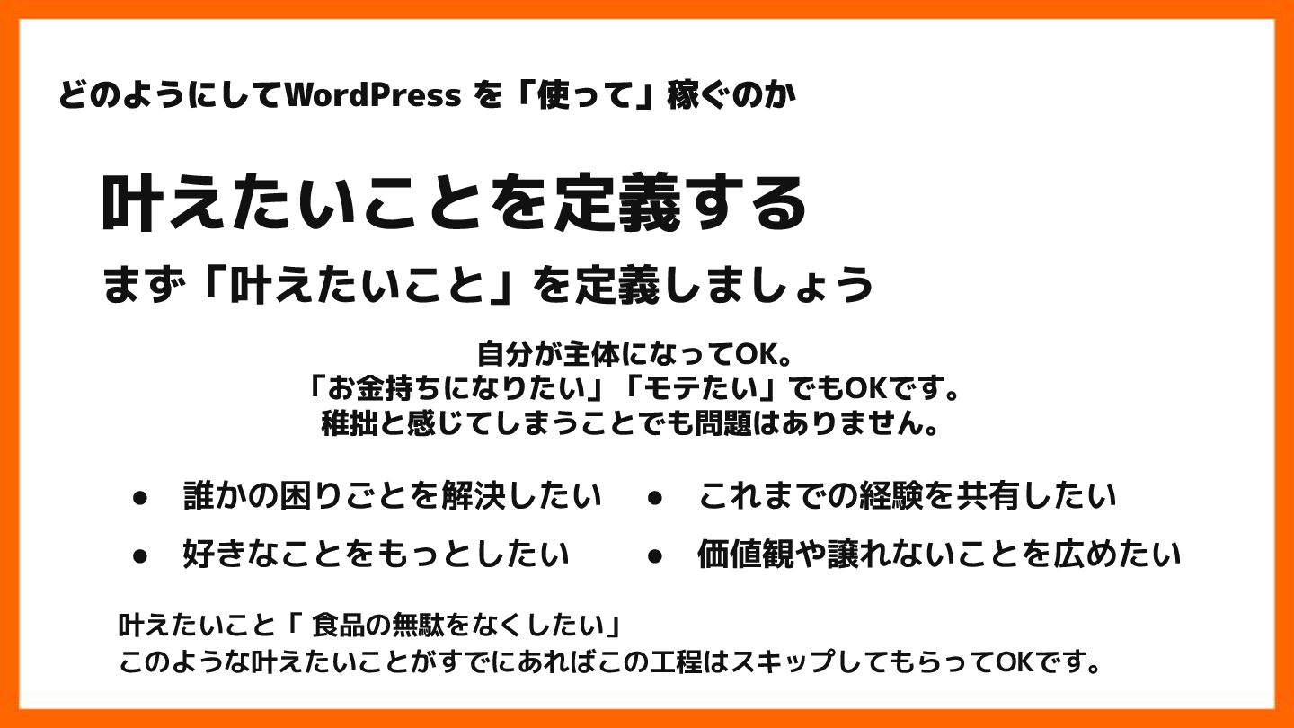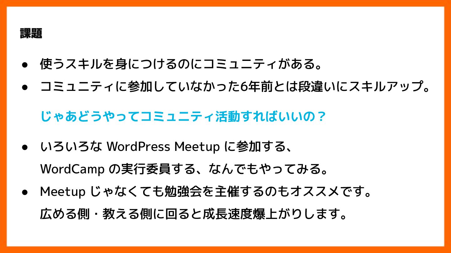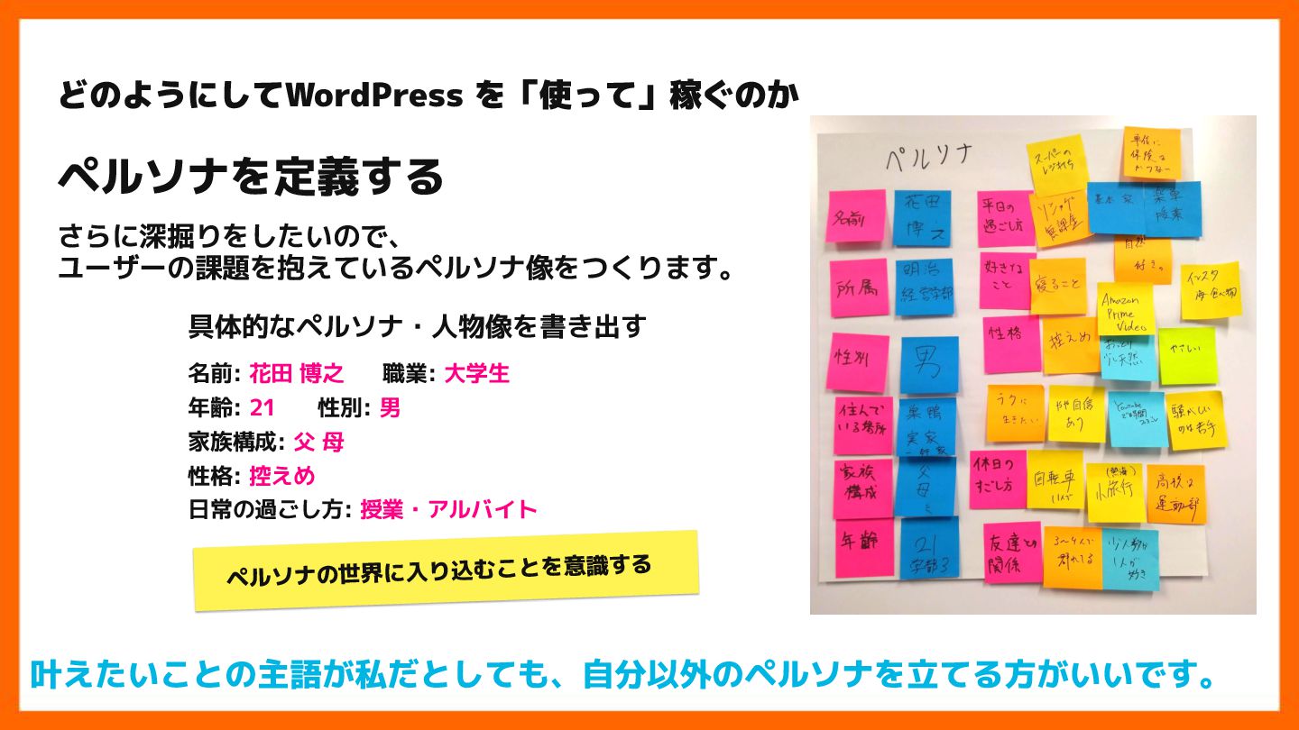 Web 制作に限らず、WordPress を使って事業・サービス・コミュニティを広めたい人、そして「稼げたら WordPress に還元する」という循環をつくりたい人に向けた内容です。