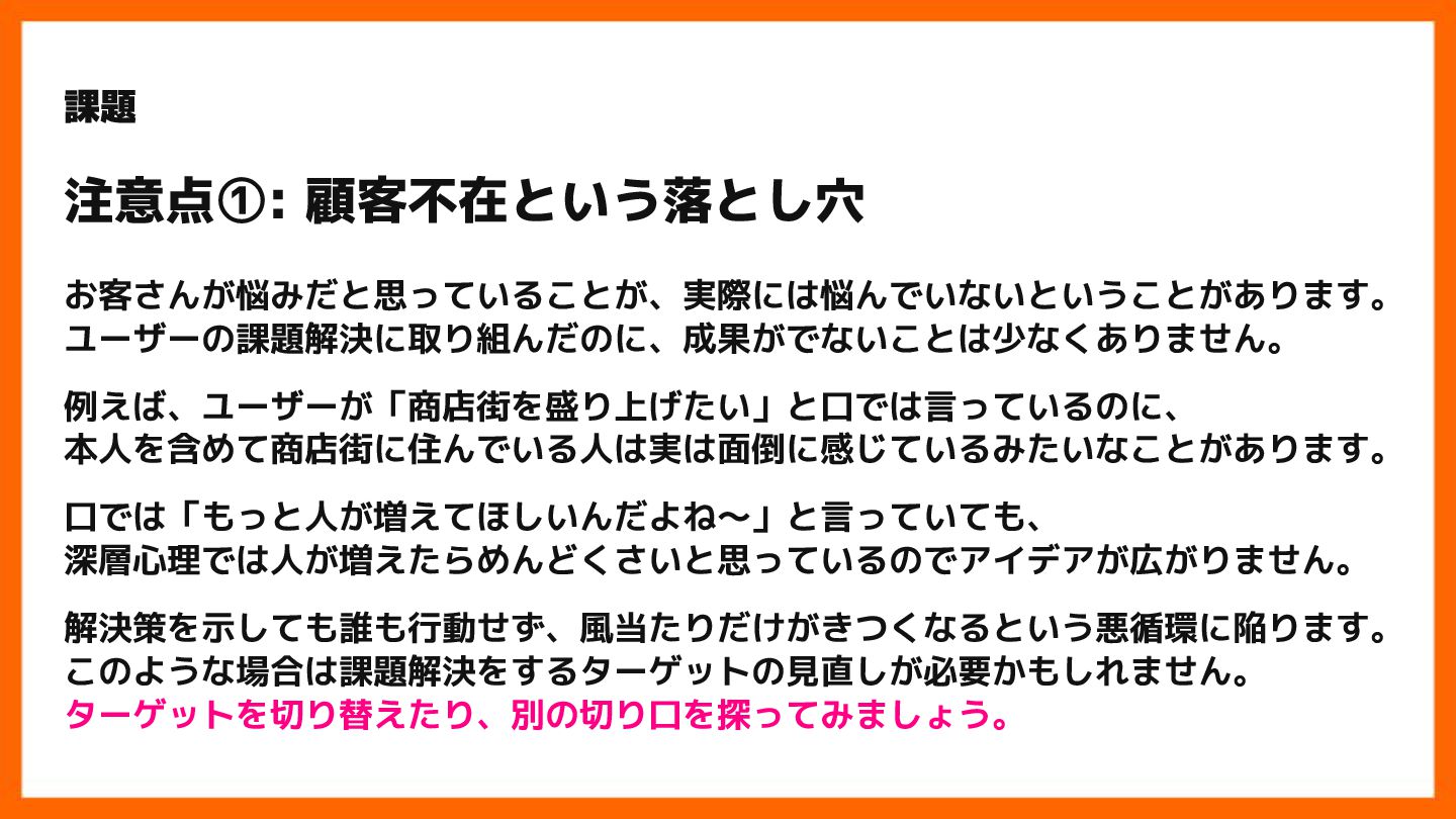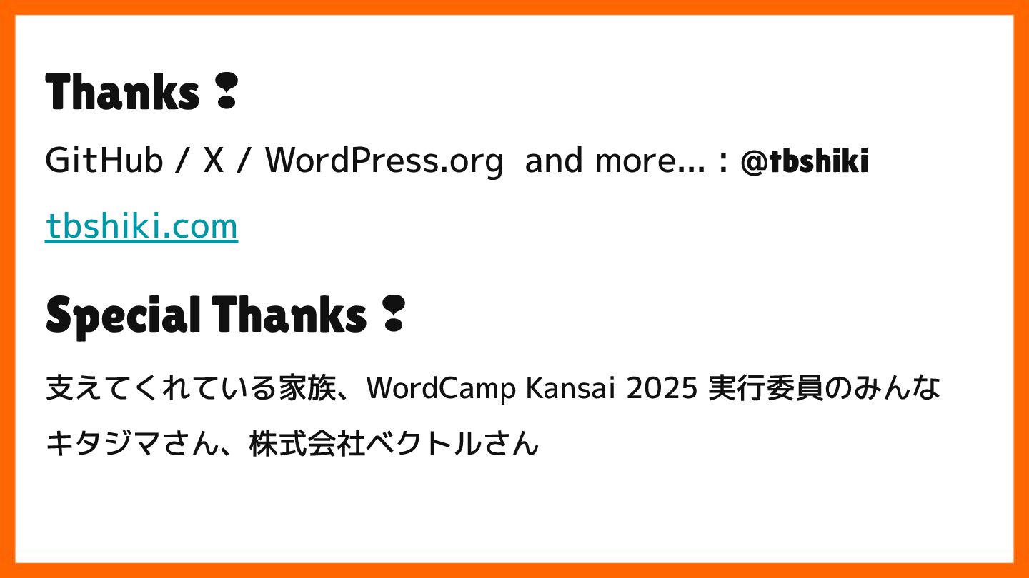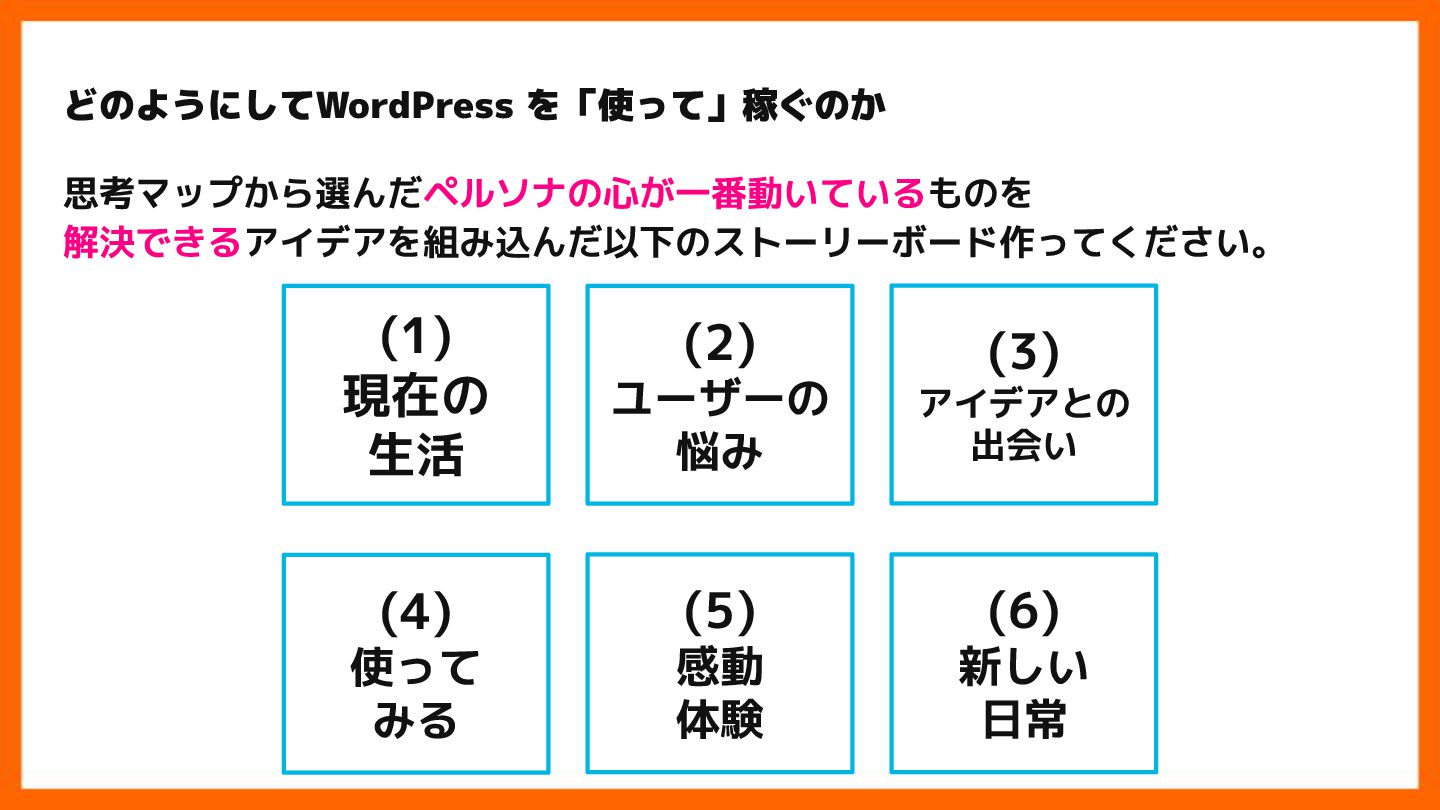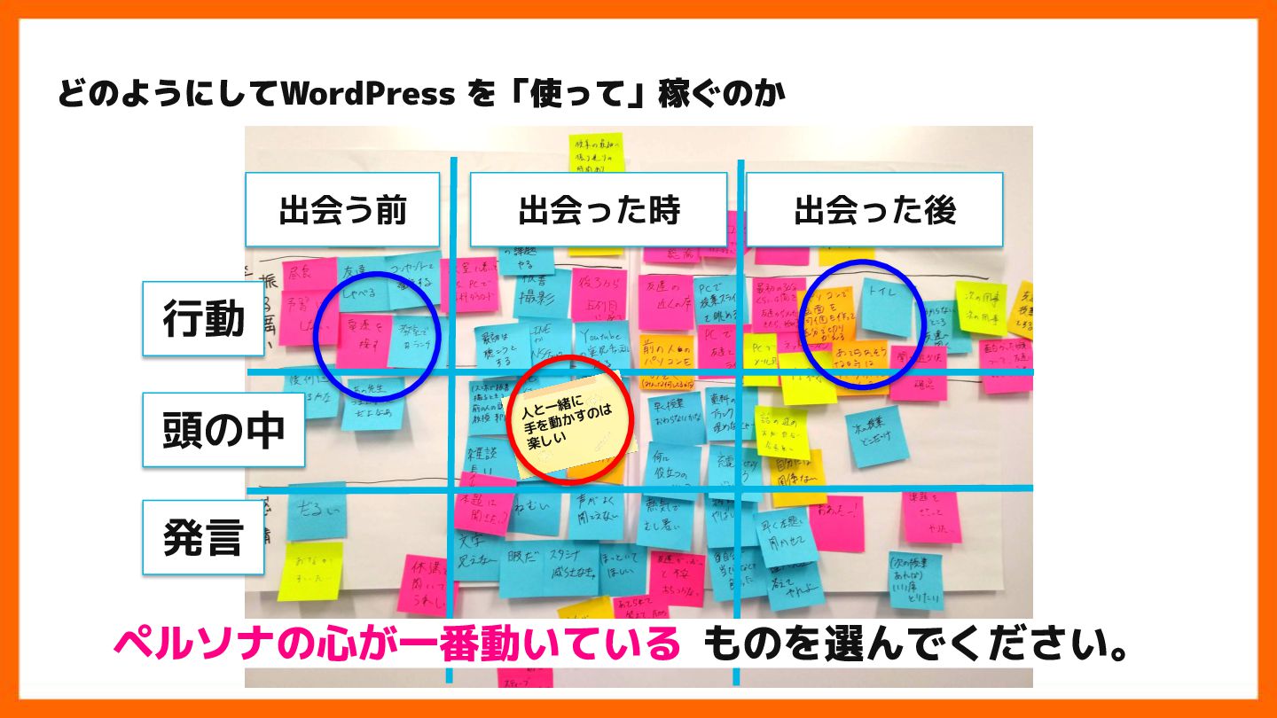 セッション内では、「WordPress だからSEOに強い」「インストールすれば集客できる」「コミュニティの肩書きで仕事がとれる」 といった“よくある誤解”や、WordPress に「使われてしまう」状態を取り上げ、それをどう回避するかを紹介します。そのうえで、誰の・どんな課題を解決するのかを深掘りし、ペルソナ・共感マップ・ストーリーボードでアイデアを形にし、WordPress で MVP を素早く公開して検証する流れを解説しています。