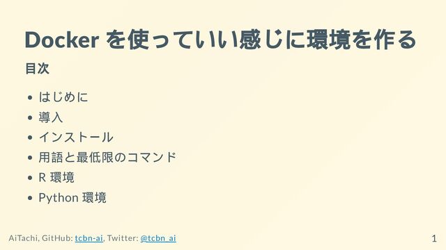 CREATED STATUS PORTS NAMES C:\Users\stare\Documents\GitHub\TIL>docker ps -a CONTAINER ID IMAGE COMMAND CREATED STATUS PORTS NAMES 029be545abe1 til_devcontainer_python "sleep infinity" 6 hours ago Exited (137) 15 minutes ago til_devcontainer_python_1 -a を付けると,停止しているコンテナも表示する. AiTachi, GitHub: tcbn-ai, Twitter: @tcbn_ai 13