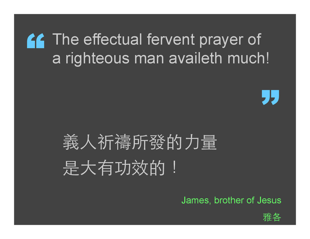 “ ” James, brother of Jesus 雅各 義⼈人祈禱所發的⼒力量 是⼤大有功效的!