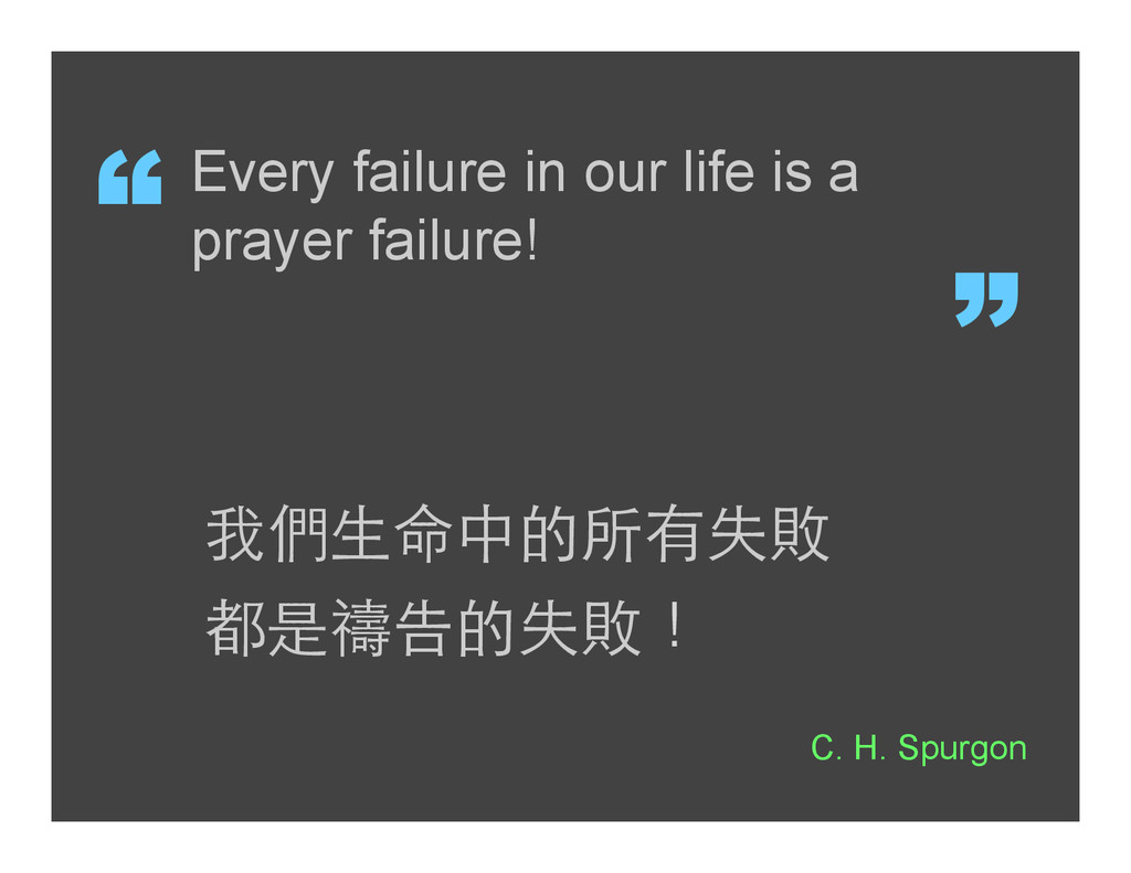 ” C. H. Spurgon 我們⽣生命中的所有失敗 都是禱告的失敗!