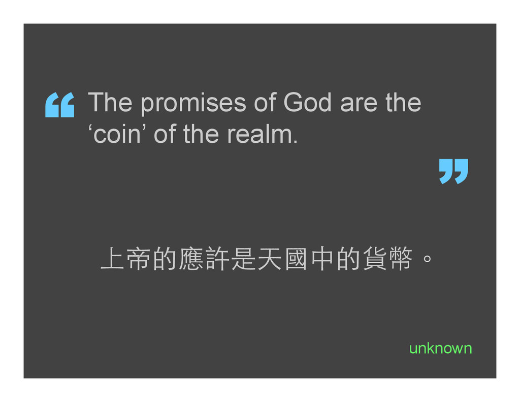 “ ” unknown 上帝的應許是天國中的貨幣。