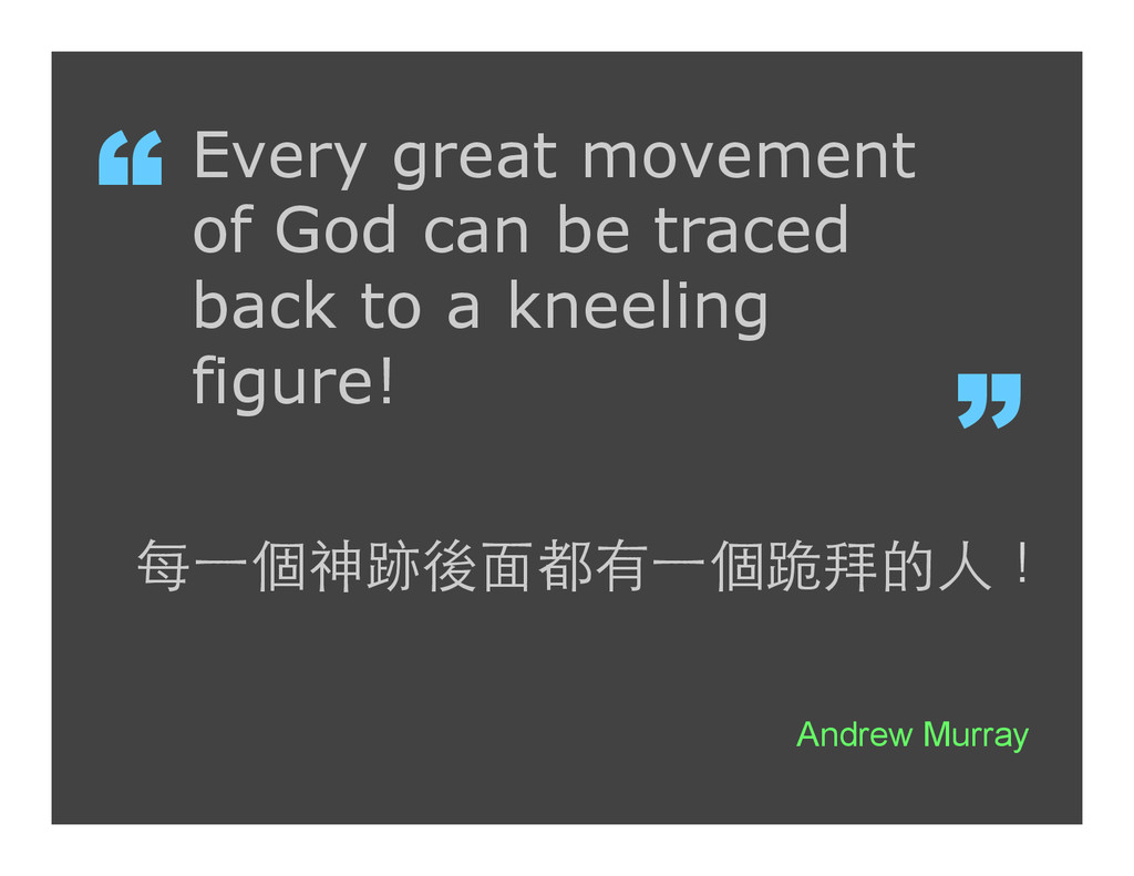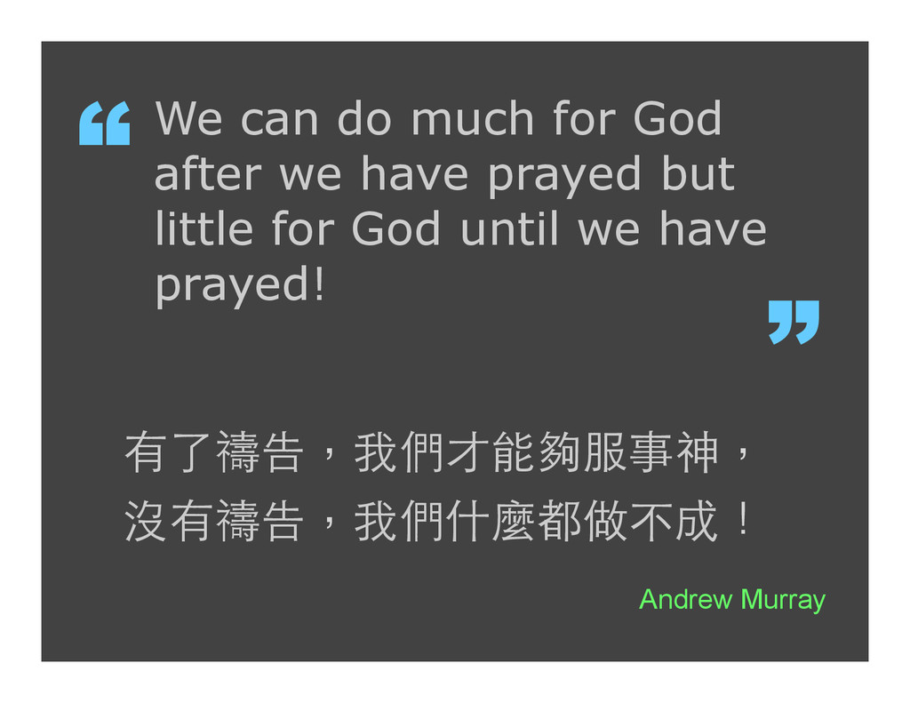 but little for God until we have prayed! “ ” Andrew Murray 有了禱告,我們才能夠服事神, 沒有禱告,我們什麼都做不成!