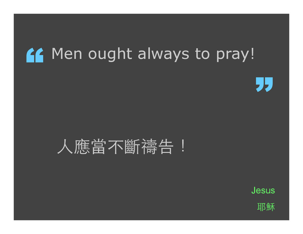 Men ought always to pray! “ ” Jesus 耶穌 ⼈人應當不斷禱告!