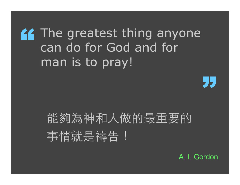 man is to pray! “ ” A. I. Gordon 能夠為神和⼈人做的最重要的 事情就是禱告!