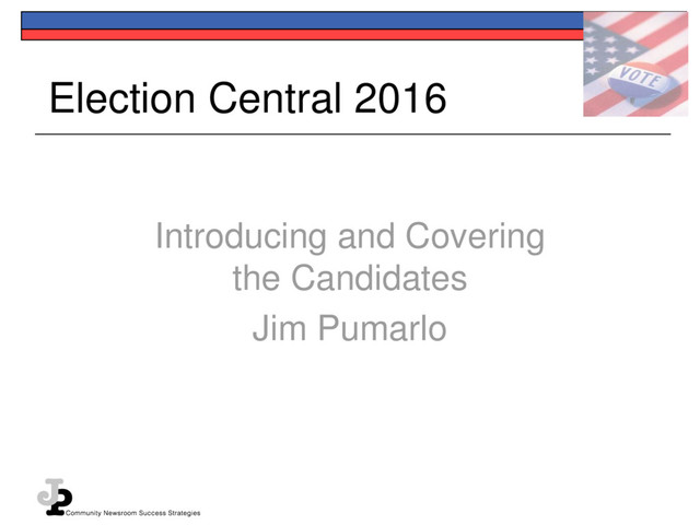 Guide to Reporting on Sensitive Issues in a Small- Town Newspaper" "Votes and Quotes: A Guide to Outstanding Election Campaign Coverage" "Journalism Primer: A Guide to Community News Coverage for Beginning and Veteran Journalists in the Age of New Media" Jim Pumarlo Newspaper Consultant Red Wing MN (651) 380-4295