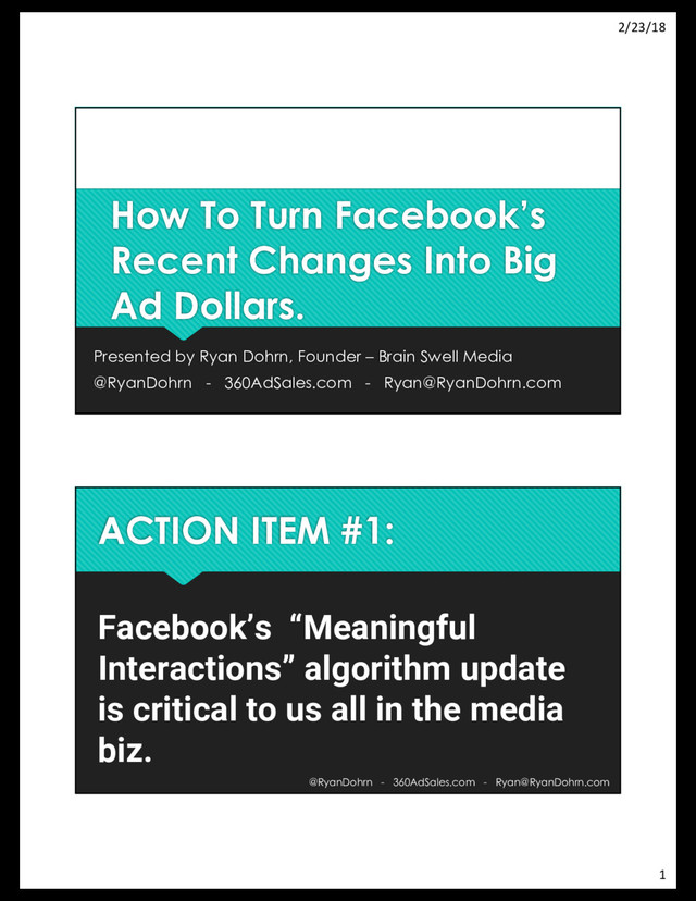 [email protected] The Math on an un-boosted post Bob’s Jewelry Store has 2,431 Likes on their Facebook Page…. 3% = 72 2% = 48 1% = 24 @RyanDohrn - 360AdSales.com -