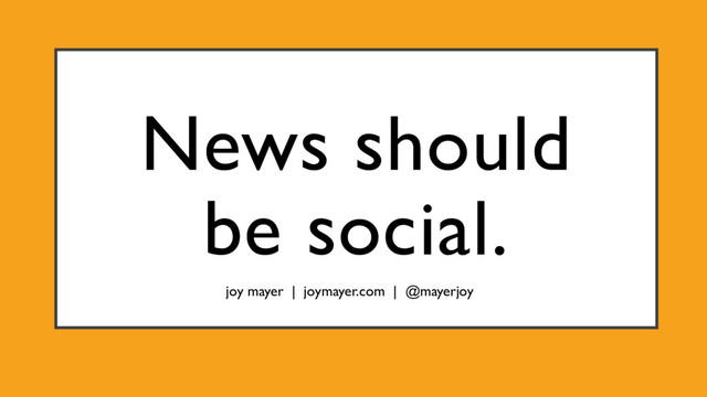 News should be social. joy mayer | joymayer.com | @mayerjoy