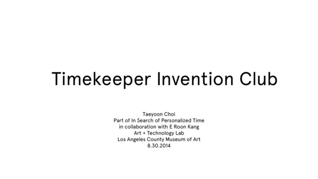 Timekeeper Invention Club Taeyoon Choi Part of In Search of