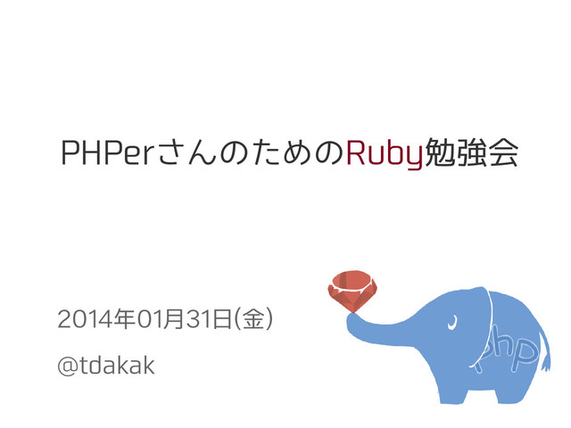 2014/1/31に開催した「PHPerさんのためのRuby勉強会」の発表資料です。