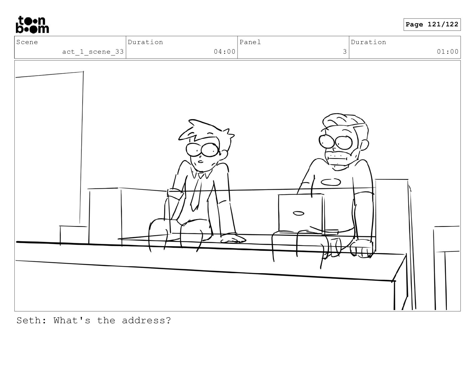 Scene act_1_scene_33 Duration 04:00 Panel 3 Duration 01:00 Seth: What's