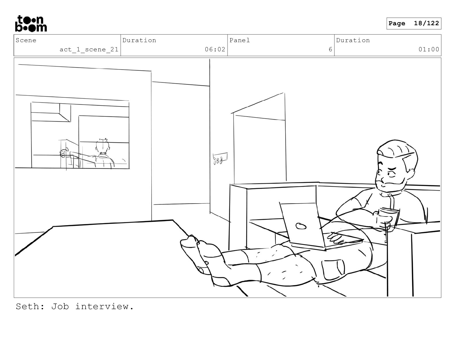 Scene act_1_scene_25 Duration 29:00 Panel 21 Duration 01:00 Seth: Everyone