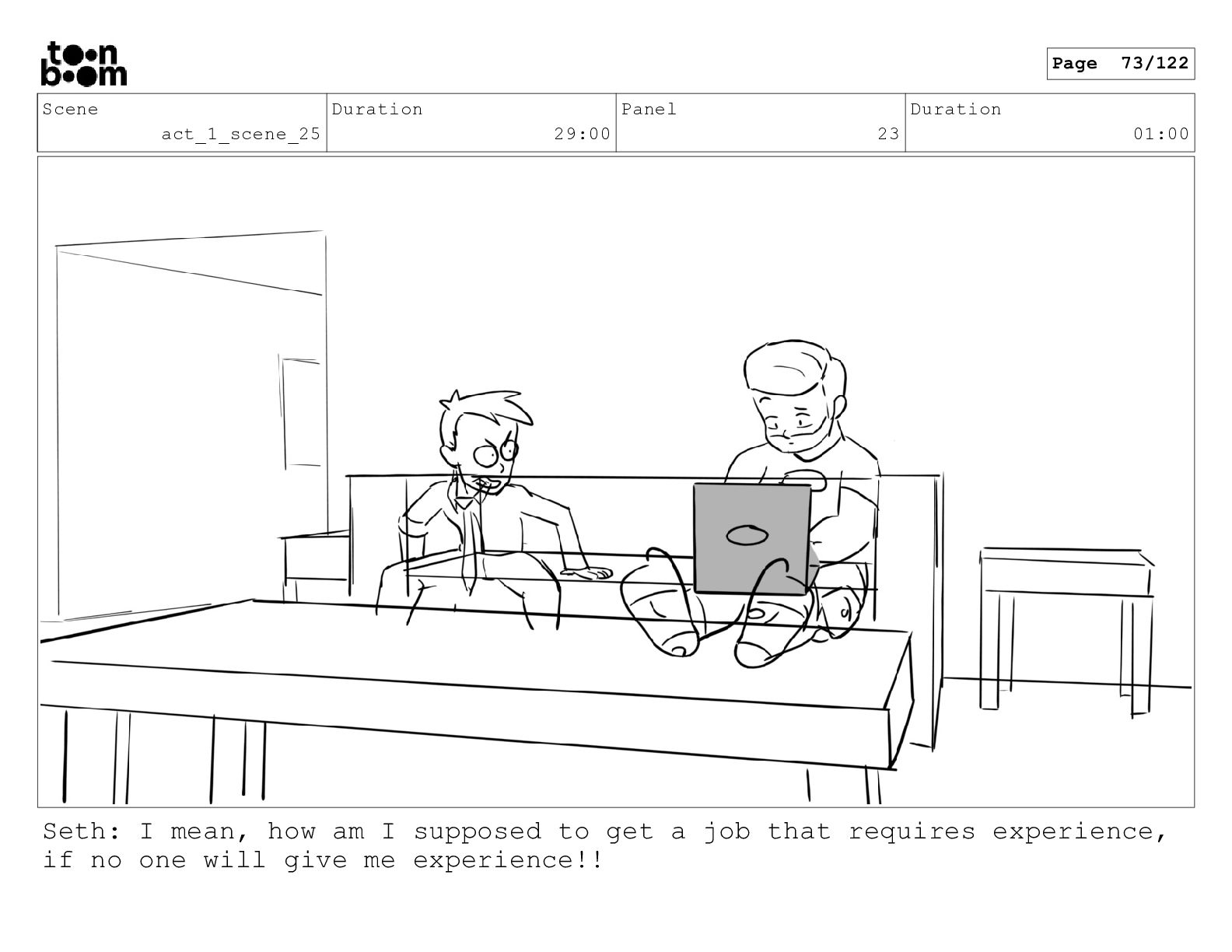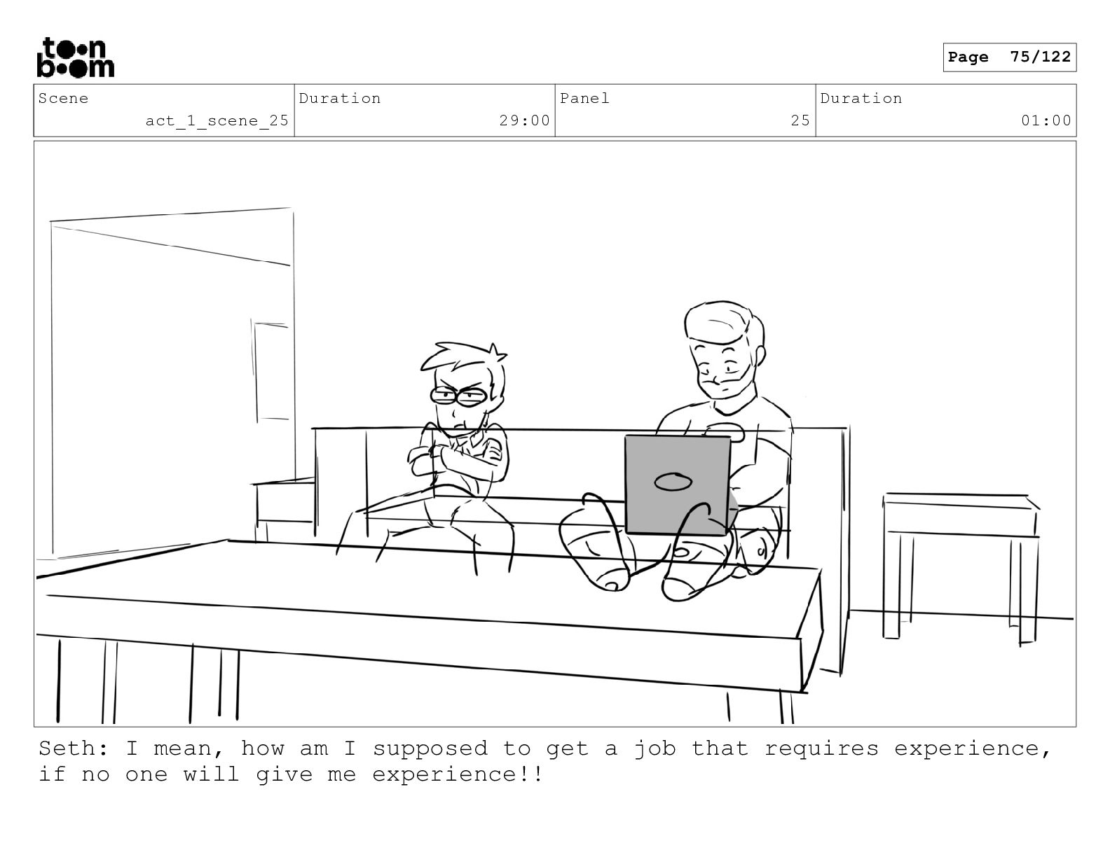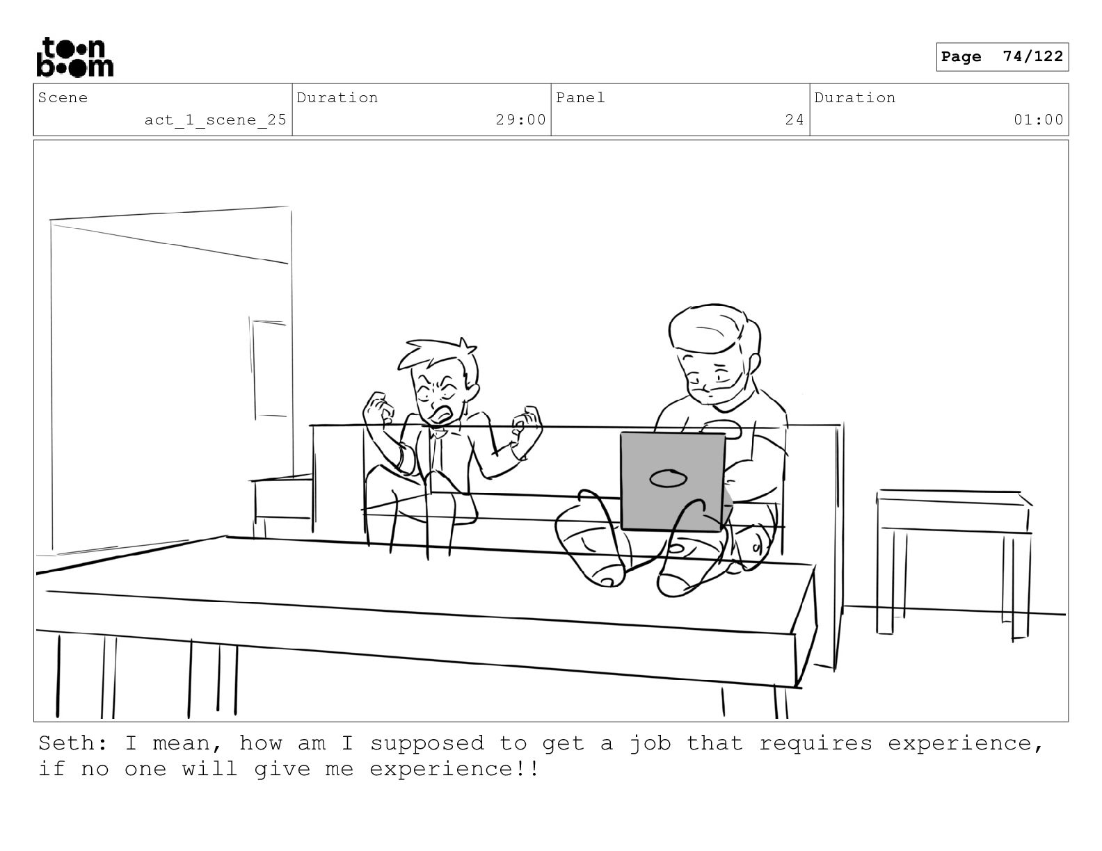 Scene act_1_scene_25 Duration 29:00 Panel 14 Duration 01:00 Seth: No