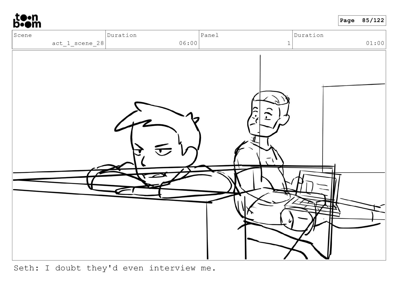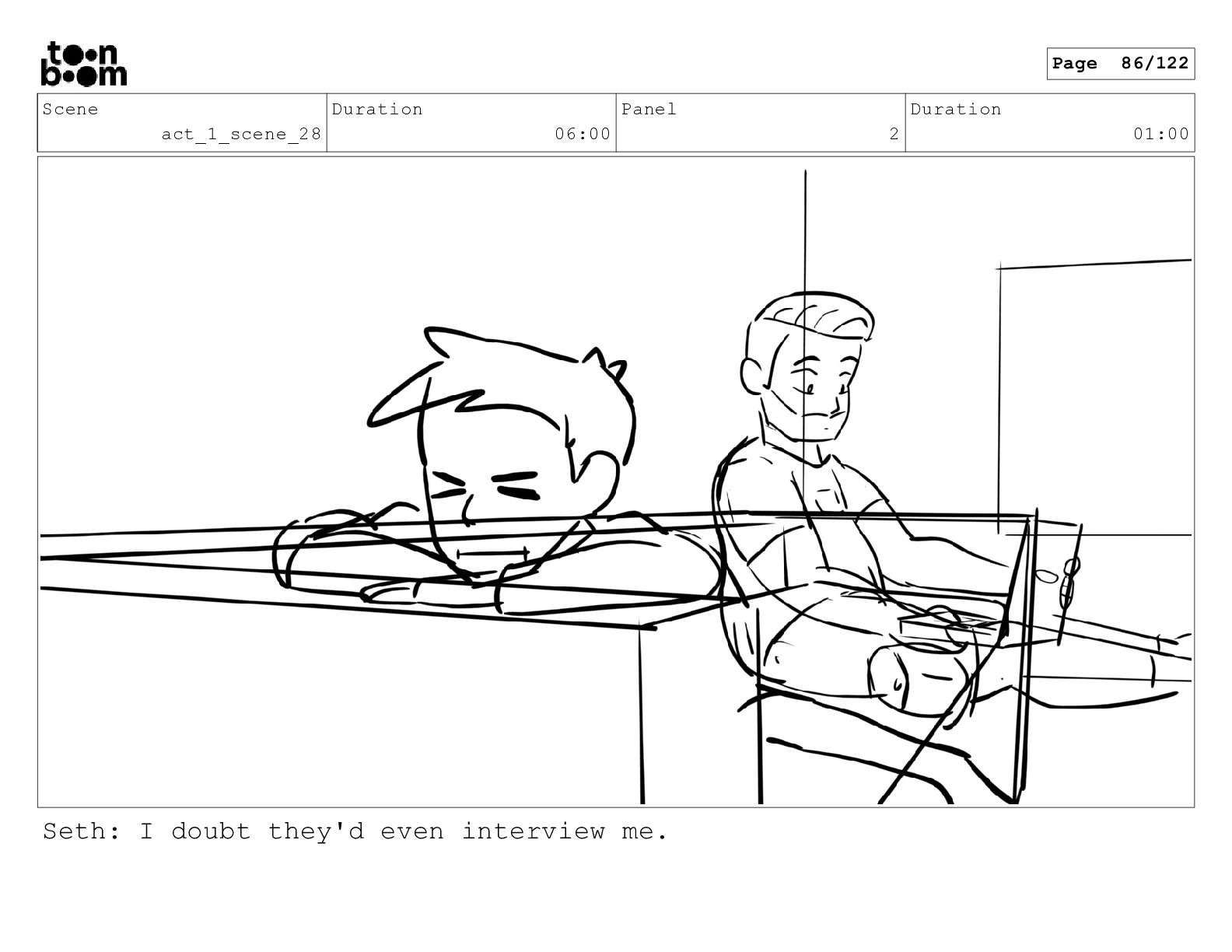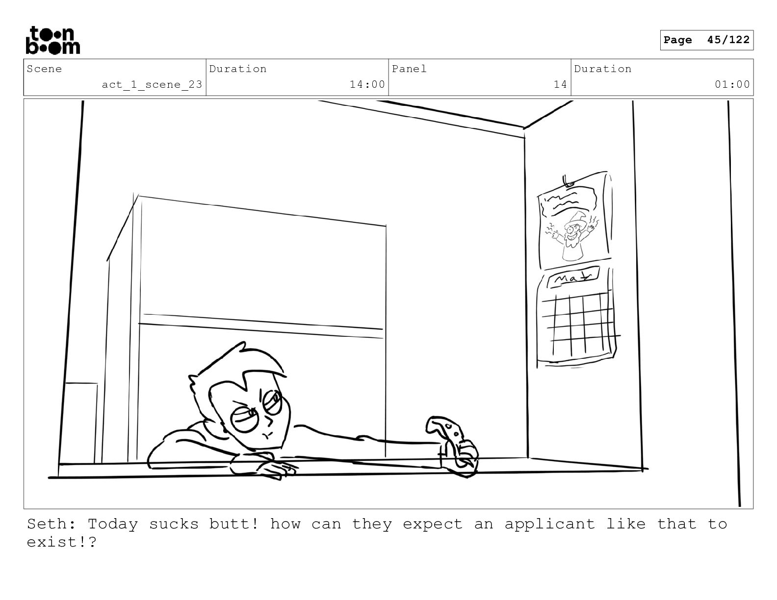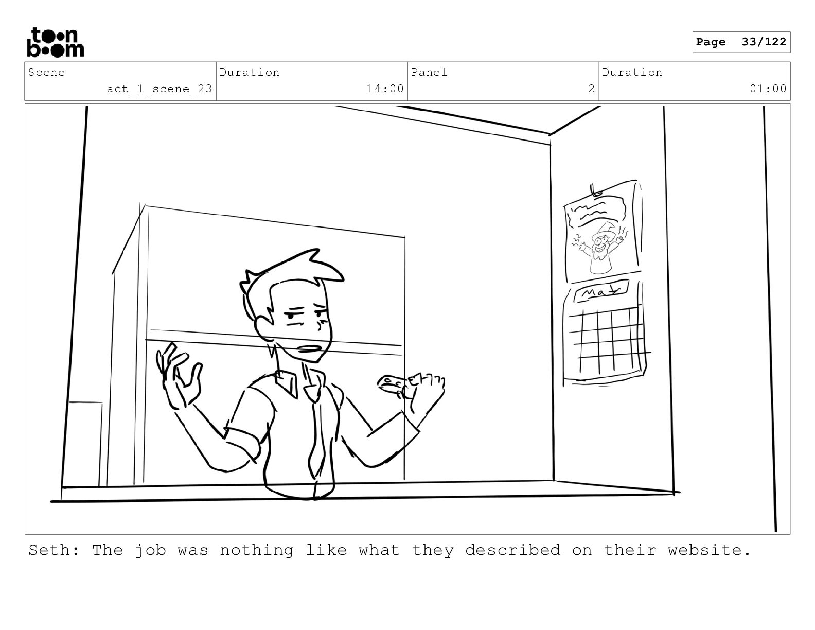 Scene act_1_scene_25 Duration 29:00 Panel 14 Duration 01:00 Seth: No