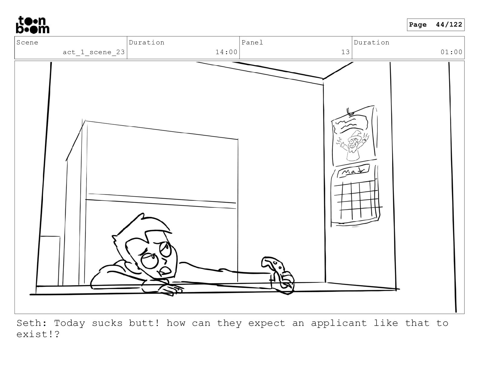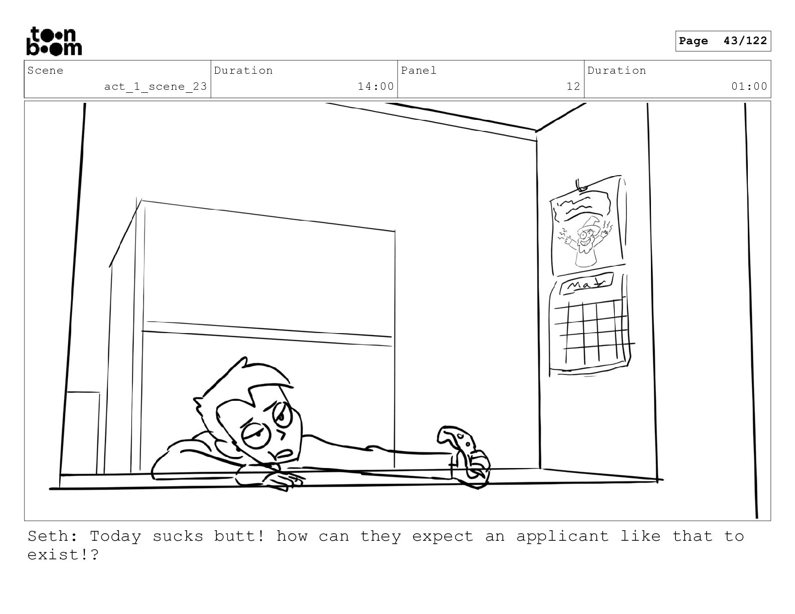 Scene act_1_scene_25 Duration 29:00 Panel 13 Duration 01:00 Seth: No