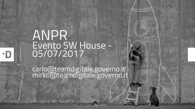 di comunicazione e condivisione dei problemi e delle soluzioni. Accelerazione: noi riteniamo che molti dei nodi aperti che prevengono un processo di adozione di ANPR siano stati rimossi, altri li stiamo trattando, vorremmo arrivare ad un piano industriale di subentro. ANPR Cosa ci aspettiamo: Trasparenza: immediata evidenza e presa in carico dei problemi, condivisione dei piani per il subentro, comunicazione diretta tra gli attori coinvolti.