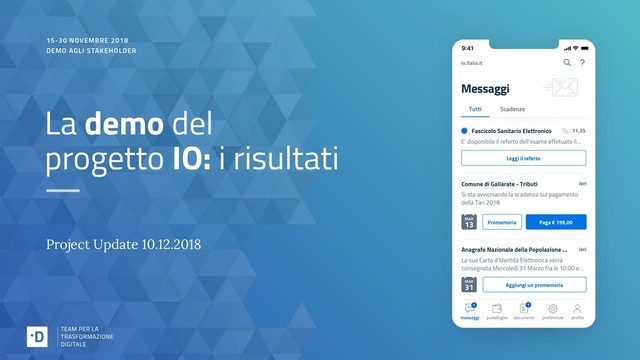 Una demo funzionante della app (in gergo una "versione alpha"), connessa ai sistemi reali di alcune Pubbliche Amministrazioni, è stata installata sugli smartphone di 100 partecipanti per un periodo di 15 giorni. Al termine della demo, ogni partecipante è stato invitato a lasciare un feedback chiedendo di segnalare eventuali bug incontrati durante l’utilizzo dell’applicazione; raccontare problemi e dubbi; esprimere proposte per migliorare la app o integrare altri servizi e funzionalità.