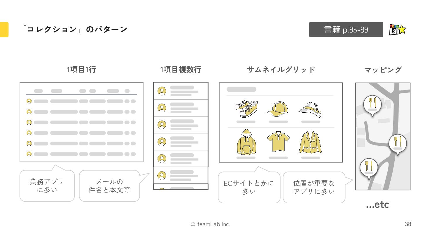17. © teamLab Inc. 「コレクション」のパターン 書籍 p.95-99 38 38 1項目複数行 1項目1行