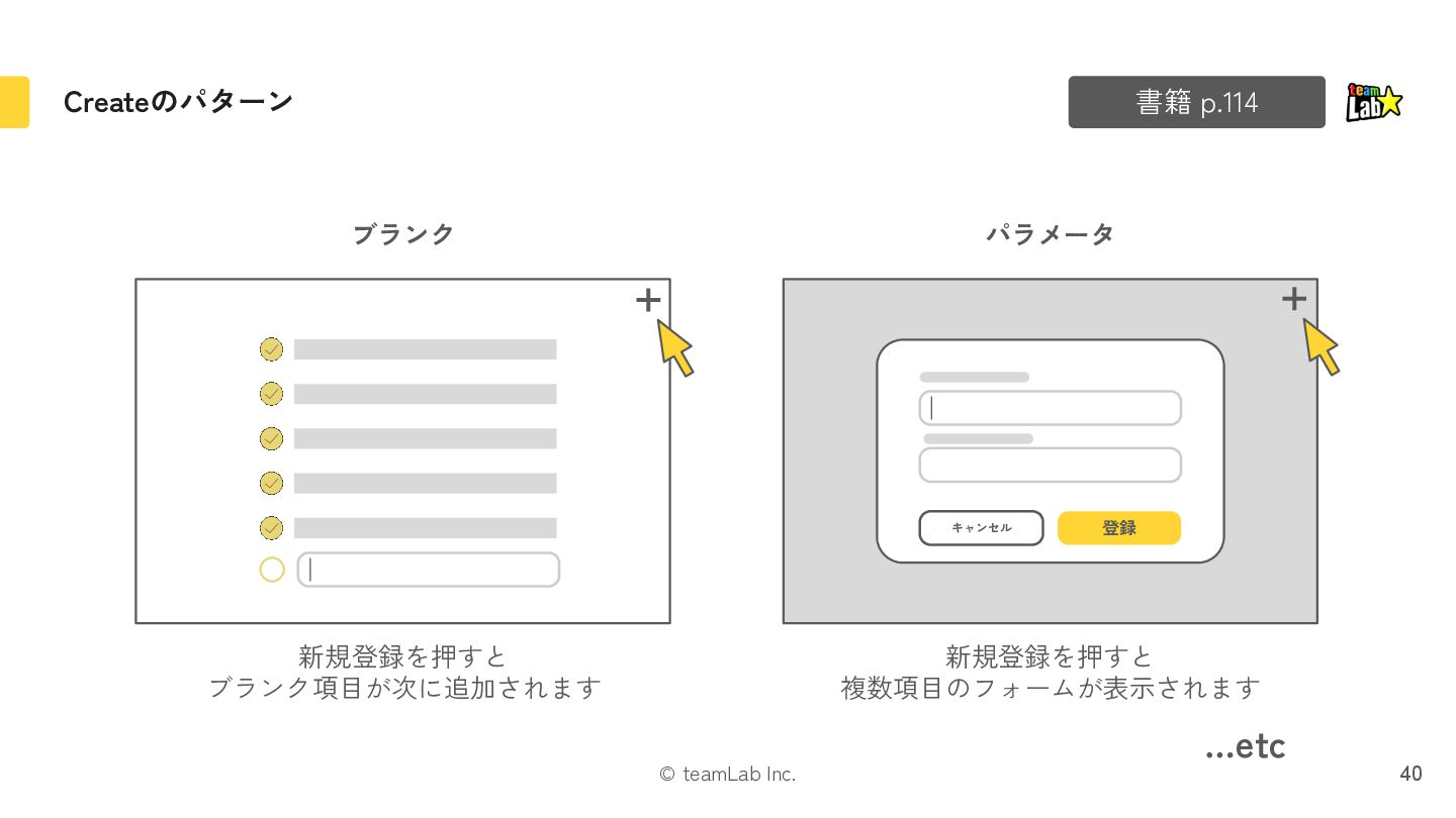 19. © teamLab Inc. Createのパターン 40 書籍 p.114 ブランク パラメータ 登録