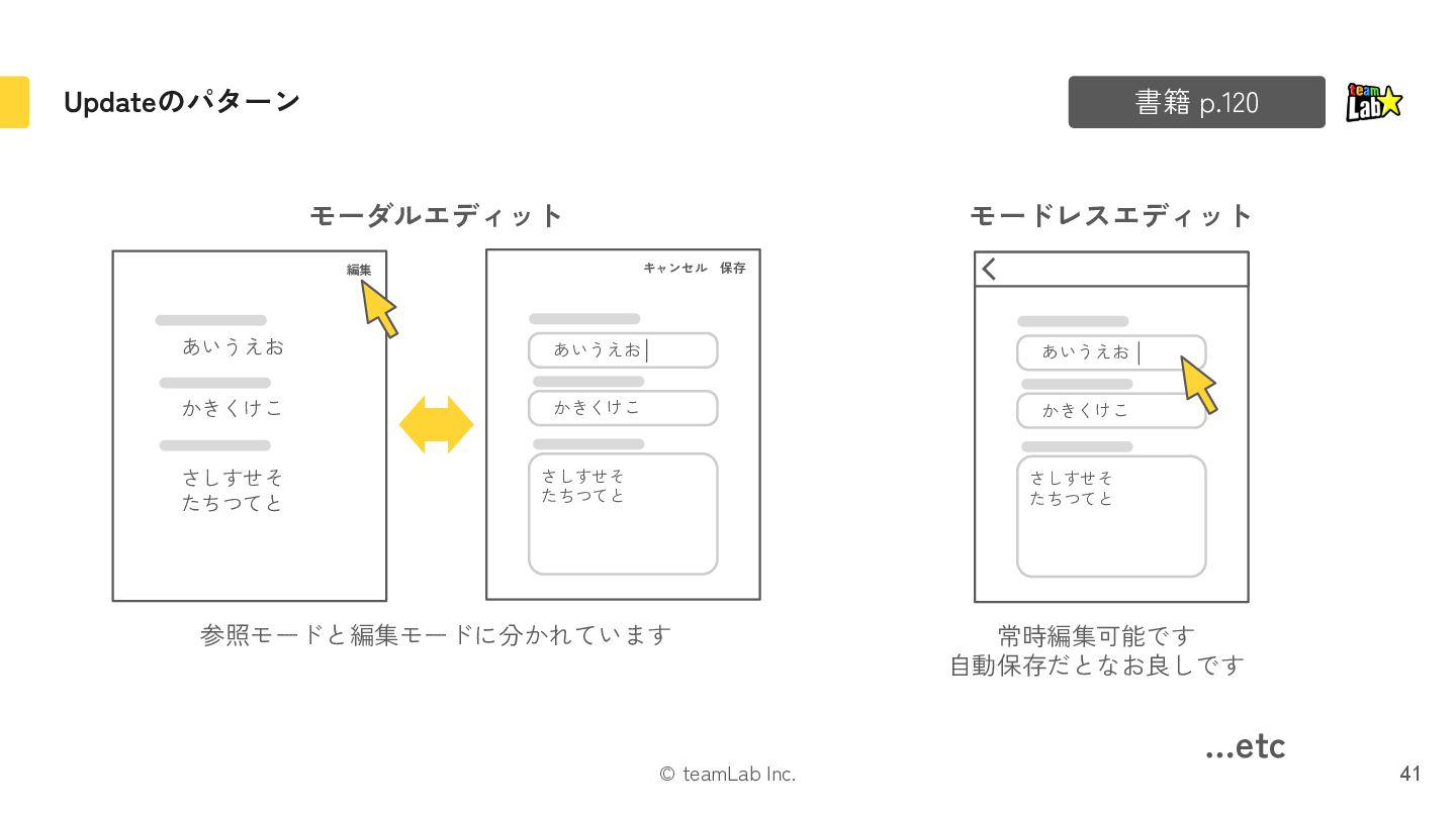 20. © teamLab Inc. Updateのパターン 41 書籍 p.120 モードレスエディット あいうえお かきくけこ