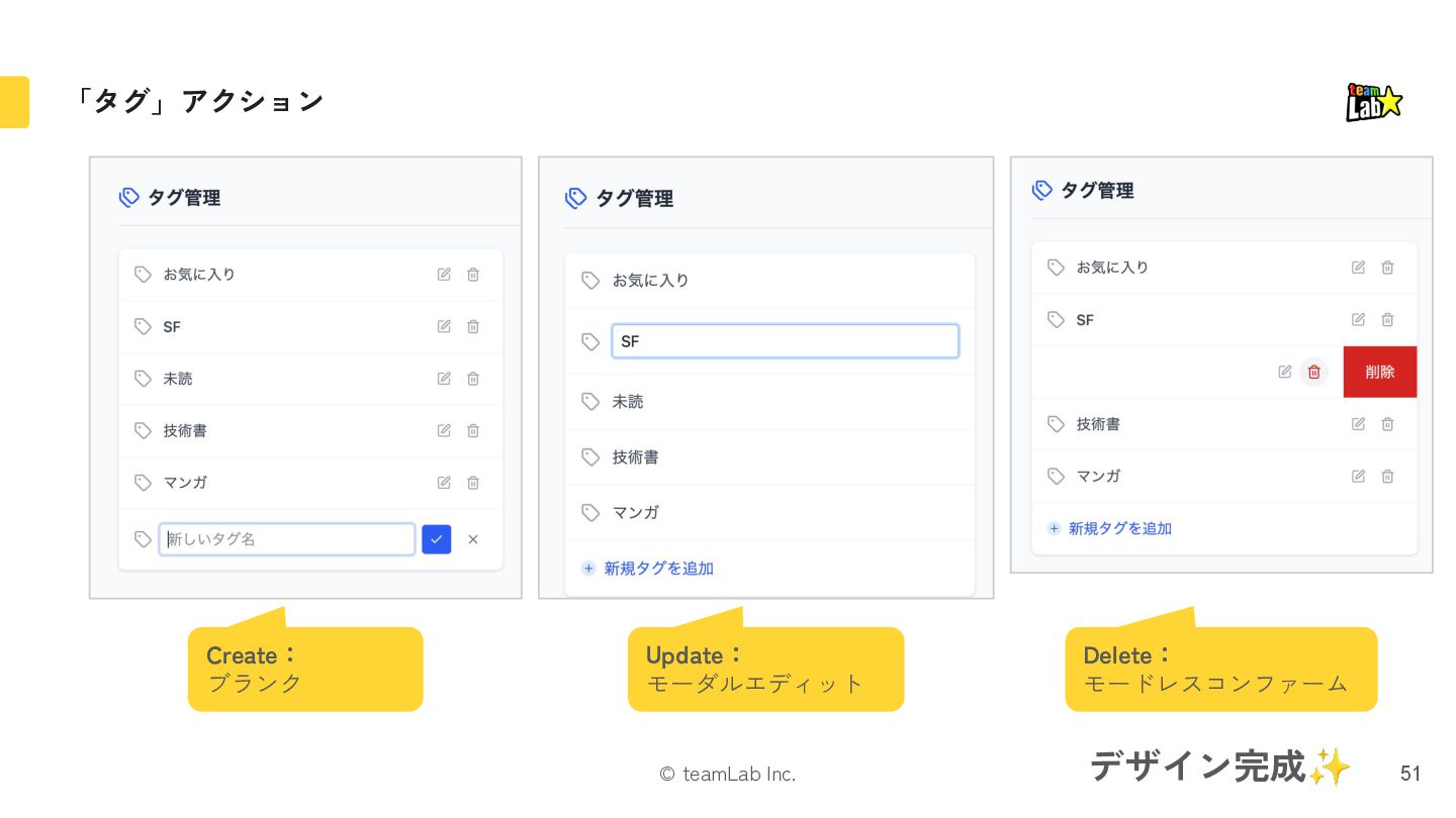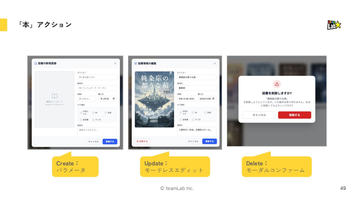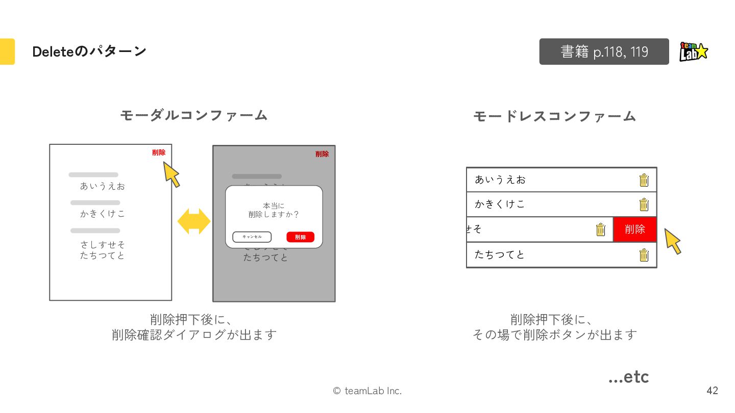 21. © teamLab Inc. Deleteのパターン 42 書籍 p.118, 119 モードレスコンファーム モーダルコンファーム