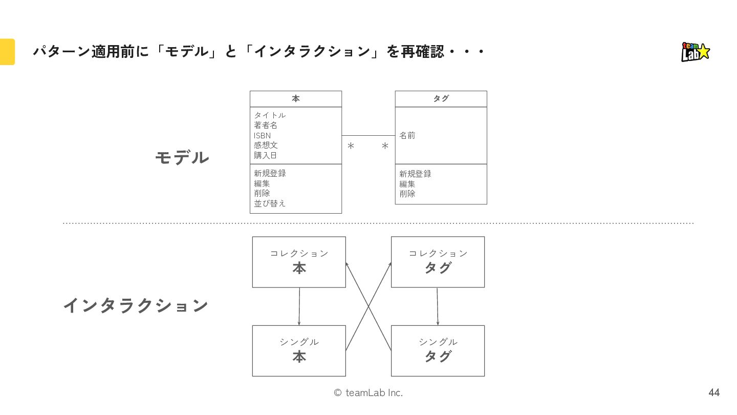22. © teamLab Inc. パターン適用前に「モデル」と「インタラクション」を再確認・・・ 44 シングル 本 コレクション 本 シングル