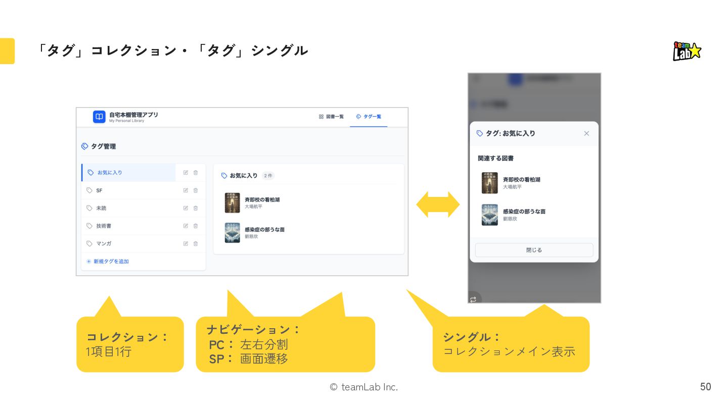 23. © teamLab Inc. 実際に作った「プレゼンテーション」がこちら(次に実際のレイアウトをお見せします) 45 シングル 本 コレクション 本 シングル