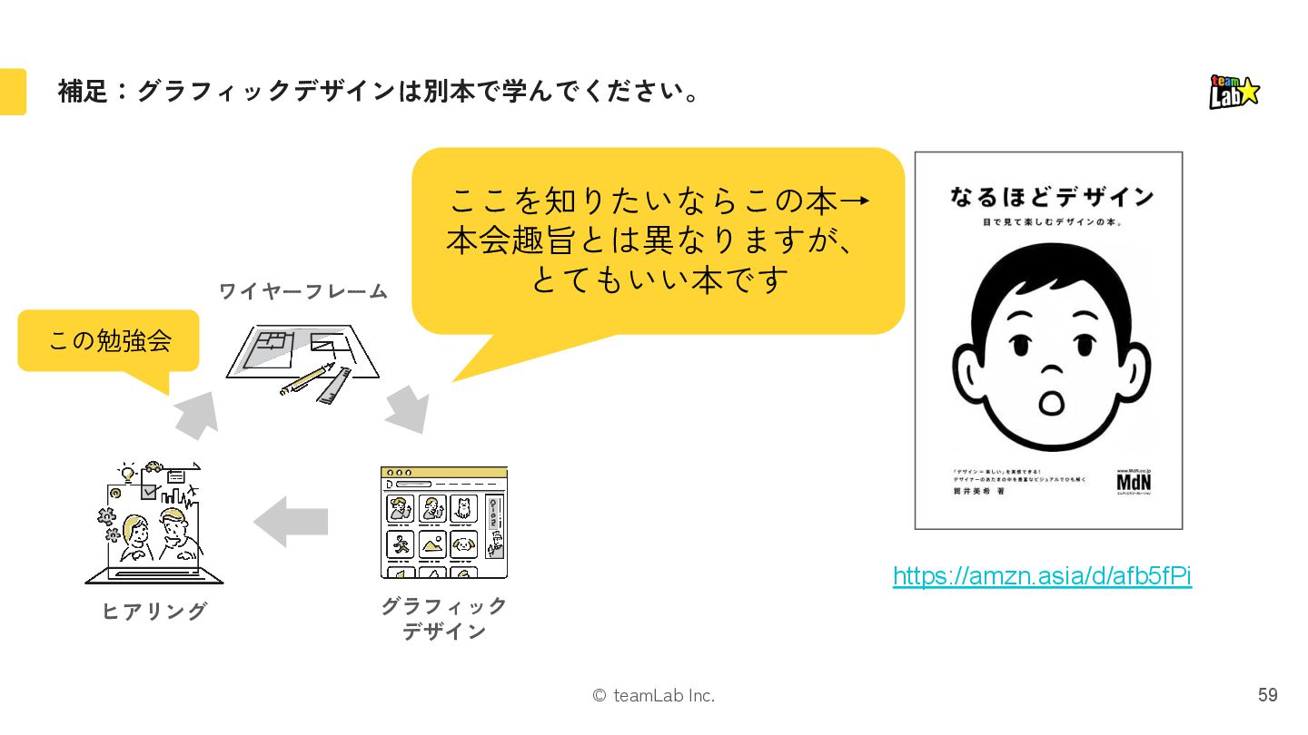 心がけました ❏ 参考箇所には以下のバッジをつけています ❏ 「UI」を「Design=設計」する話のため グラフィックデザインの話はしません。 (要件〜ワイヤーフレームまで) 書籍 p.XX