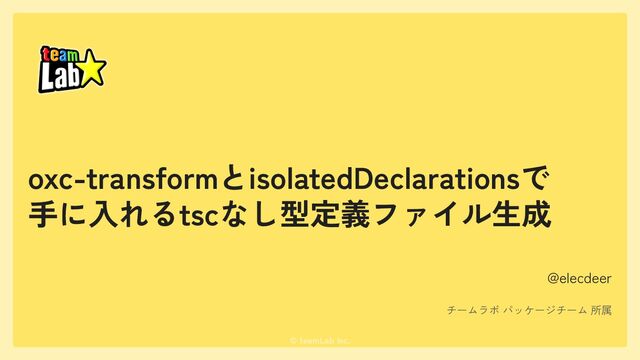 11. © teamLab Inc. まとめ - isolatedDeclarationsオプションによる制約により、 tsc以外によるdts生成が現実的になった - oxc-transform -