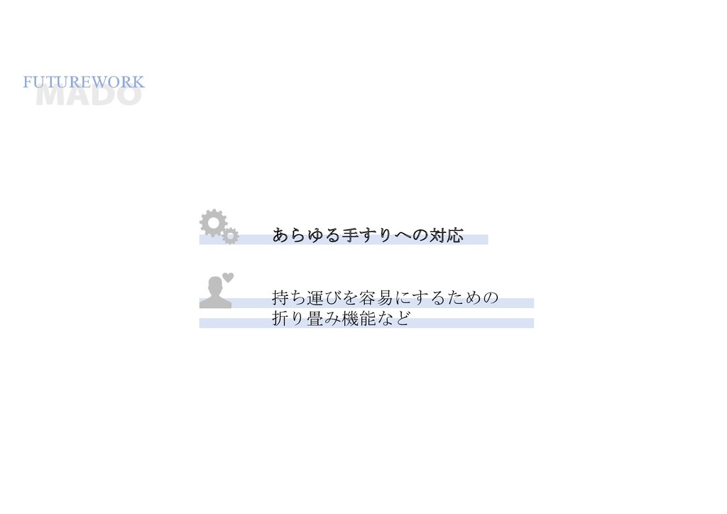 FUTUREWORK あらゆる手すりへの対応 持ち運びを容易にするための 折り畳み機能など