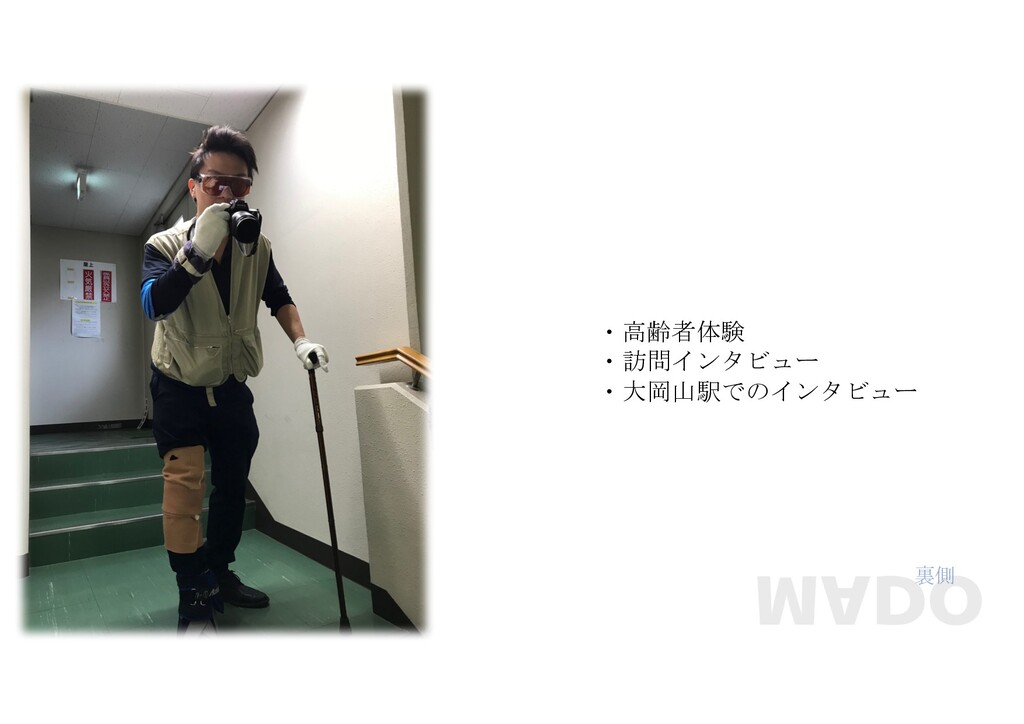 裏側 ・高齢者体験 ・訪問インタビュー ・大岡山駅でのインタビュー