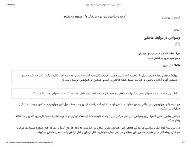 tebberavan.com/obsession-in-emotional-relationships/ 1/2 تﻻﺎﻘﻣ Home نارﺎﻤﯿﺑ یاﺮﺑ ﺢﯿﺤﺻ ﯽﻔﻃﺎﻋ ﻪﻄﺑار اﺮﭼ دراد ﺲﮑﻋ ﻪﺑ یﺮﺛا ﯽﺳاﻮﺳو یﺮﯾﻮﻧ ﺮﺘﮐد ،هﺪﻨﻫد ﺪﺷر تاﺮﯿﺛﺎﺗ.ﺪﻨﻨﮑﯿﻣ ﺪﯿﮐﺎﺗ داﺮﻓا ﻪﻤﻫ ﻪﺑ نﺎﺳﺎﻨﺸﻧاور ﻪﮐ ﺖﺴﯿﺗﺎﮑﻧ ﻦﯾﺮﺗ ﺖﺒﺜﻣ و ﻦﯾﺮﺗ هﺪﺷ ﻪﯿﺻﻮﺗ زا ﯽﮑﯾ ﺢﯿﺤﺻ و ﺎﯾﻮﭘ ﯽﻔﻃﺎﻋ ﻂﺑاور .ﺖﺴﯿﻧ هﺪﯿﺷﻮﭘ ﺲﮑﭽﯿﻫ ﺮﺑ ﺢﯿﺤﺻ ﯽﺴﻨﺟ و ﯽﻔﻃﺎﻋ ﻪﻄﺑار هﺪﻨﻨﮐ ﺖﯾﺎﻤﺣ و ،ﺶﺨﺑ ﺶﻣارآ و روآ ﻦﯿﮑﺴﺗ !؟اﺮﭼ .ﻪﺷﺎﺑ دﺮﻓ ساﻮﺳو رد هﺪﻨﻨﮐ ﺪﯾﺪﺸﺗ ﯽﻠﻣﺎﻋ ﻪﺑ ﻞﯾﺪﺒﺗ ﻪﻧﻮﺘﯿﻣ ﺰﯿﻧ ﺢﯿﺤﺻ ﯽﻔﻃﺎﻋ ﻪﻄﺑار ﮏﯾ ﯽﺘﺣ ساﻮﺳو ﻪﺑ ﻼﺘﺒﻣ داﺮﻓا یاﺮﺑ ﺎﻣا ﯽﮔﺪﻧز و ﺮﺘﺘﻓر و ﻦﻫذ ﻪﺑ بﻮﭼرﺎﻬﭼ نوا ﻞﯿﻤﺤﺗ ﻪﺑ راداو ور دﺮﻓ و ﻪﻨﮑﯿﻣ دﺎﺠﯾا ﻼﺘﺒﻣ دﺮﻓ ﻦﻫذ رد لﻮﻘﻌﻣ ﺮﯿﻏ و ﯽﻌﻗاو ﺮﯿﻏ ﯽﺑﻮﭼرﺎﻬﭼ ساﻮﺳو نﻮﭼ .ﻪﻨﮑﯿﻣ ﺰﯿﻧ ناﺮﮕﯾد ﻪﻧاﺪﻘﺘﻨﻣ و رﻮﺨﻟد ،ﯽﺿارﺎﻧ دﻮﺧ ﮏﯾﺮﺷ ﺎﺻﻮﺼﺧ و ناﺮﮕﯾد ﺖﺳد زا ﺎﺒﻟﺎﻏ ﻪﺠﯿﺘﻧ رد ﻪﻟﻮﺒﻗ ﺮﯿﻏ و کرد ﻞﺑﺎﻗ ﺮﯿﻏ ﯽﺳاﻮﺳو یاﺮﺑ ﺎﻬﻣدآ یدﺎﻋ یرﺎﺘﻓر ﯽﺷاﻮﺣ .ﻪﻨﮑﯿﻣ رﺎﺘﻓر ﺐﺟﻮﻣ ،ﺪﻧزاﺪﻨﯿﻣ هرﺎﭽﯿﺑ یﺎﻫ ﻪﭼرﻮﻣ و ﺬﻏﺎﮐ یور ﺎﻫ ﻪﭽﺑ ﻪﮐ ﺪﯿﺷرﻮﺧ رﻮﻧ عﺎﻌﺷ ﺰﮐﺮﻤﺗ نﻮﭽﻤﻫ شا ﯽﻔﻃﺎﻋ ﯽﮔﺪﻧز رد ﯽﺳاﻮﺳو ﮏﯾ ﻪﻧﻮﮔرﺎﻤﯿﺑ ﻦﯿﺑ هرذ .ﺪﻧﺮﯿﮕﯿﻣ ﯽﻔﻃﺎﻋ ﯽﻗﻼﻃ وا ﺎﺑ ﺶﻧﺎﯿﻓاﺮﻃا و ﺶﻧﺎﯿﻓاﺮﻃا ﺎﺑ شدﻮﺧ نﺎﻣز لﻮﻃ رد و ﻪﺸﯿﻣ شا ﯽﻔﻃﺎﻋ یﺎﻬﺘﺻﺮﻓ و شا ﻪﻄﺑار ﻦﺘﺧﻮﺳ ﯽﻔﻃﺎﻋ ﻂﺑاور رد ساﻮﺳو تﻻﺎﻘﻣ دﻮﻠﻧاد و هﺪﻫﺎﺸﻣ "هﺰﯿﮕﻧا شروﺮﭘ يﺎﺒﯾز و نﺎﮕﯾار هرود" +