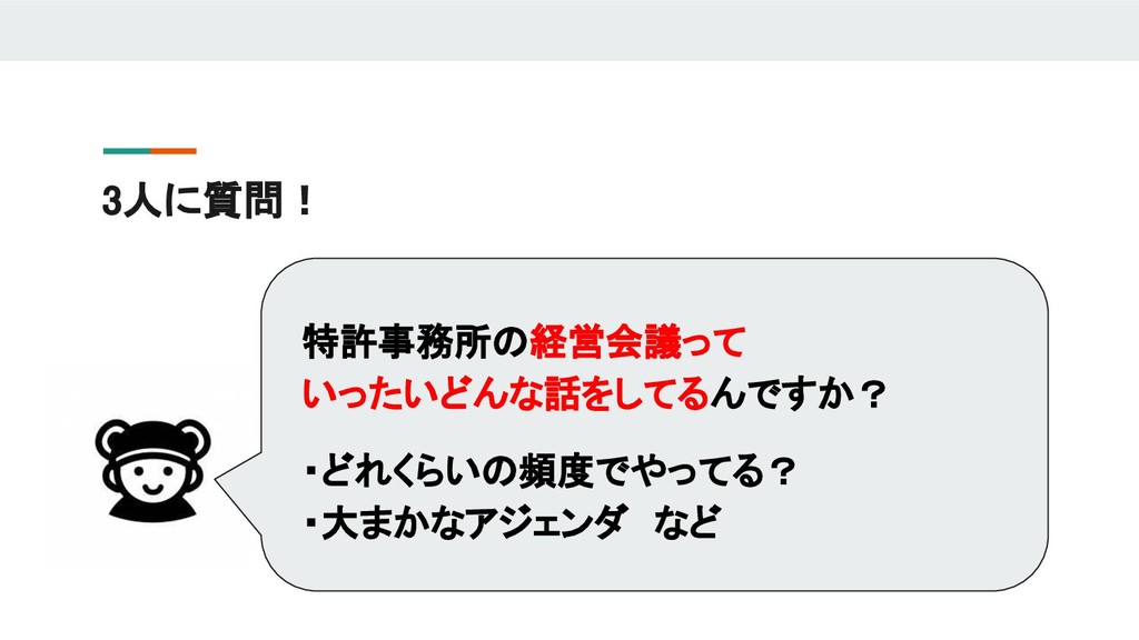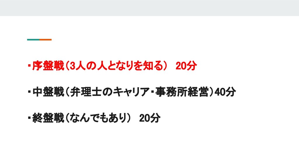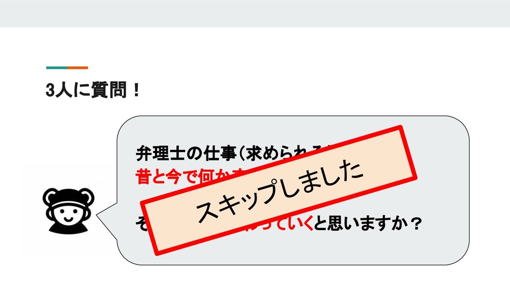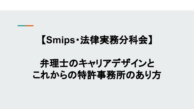 今回の法律実務分科会ではこのような社会状況を踏まえて、それぞれ別々のキャリアを歩みながら、現在は同じ特許事務所に所属し、実務の傍ら事務所運営を行っている3名の弁理士を招いて、「弁理士のキャリアデザインとこれからの特許事務所のあり方」をテーマに議論をしたいと思います。