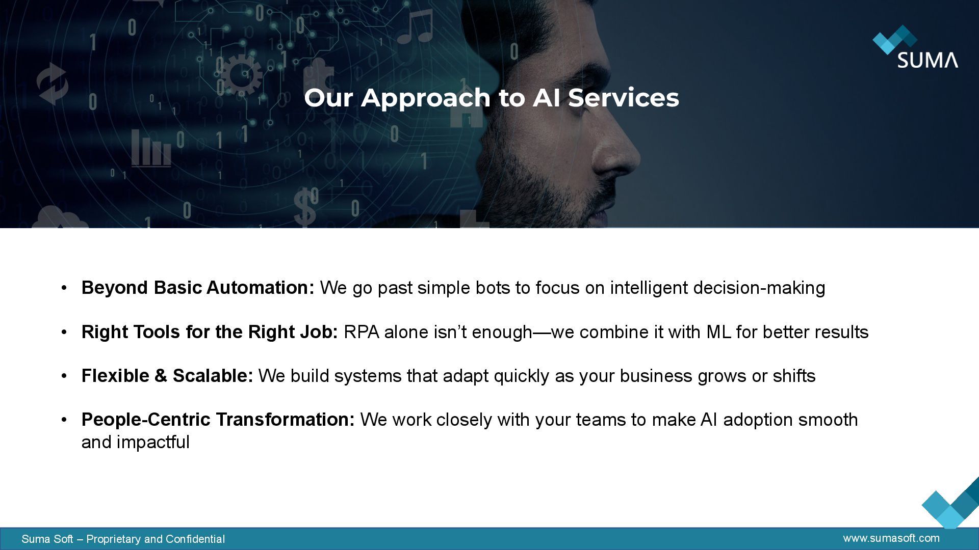 and Confidential QA & IT Security • Deep expertise across AI, ML, and automation tools • Proven results in driving efficiency and reducing costs • Agile delivery model for fast time-to-value • End-to-end support from planning to implementation