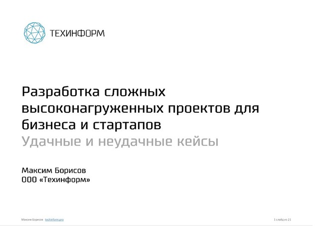 Удачные и неудачные кейсы. Презентация выступления руководителя проектов компании Техинформ Максима Борисова на втором ежегодном форуме разработчиков UfaDevConf 2018.
