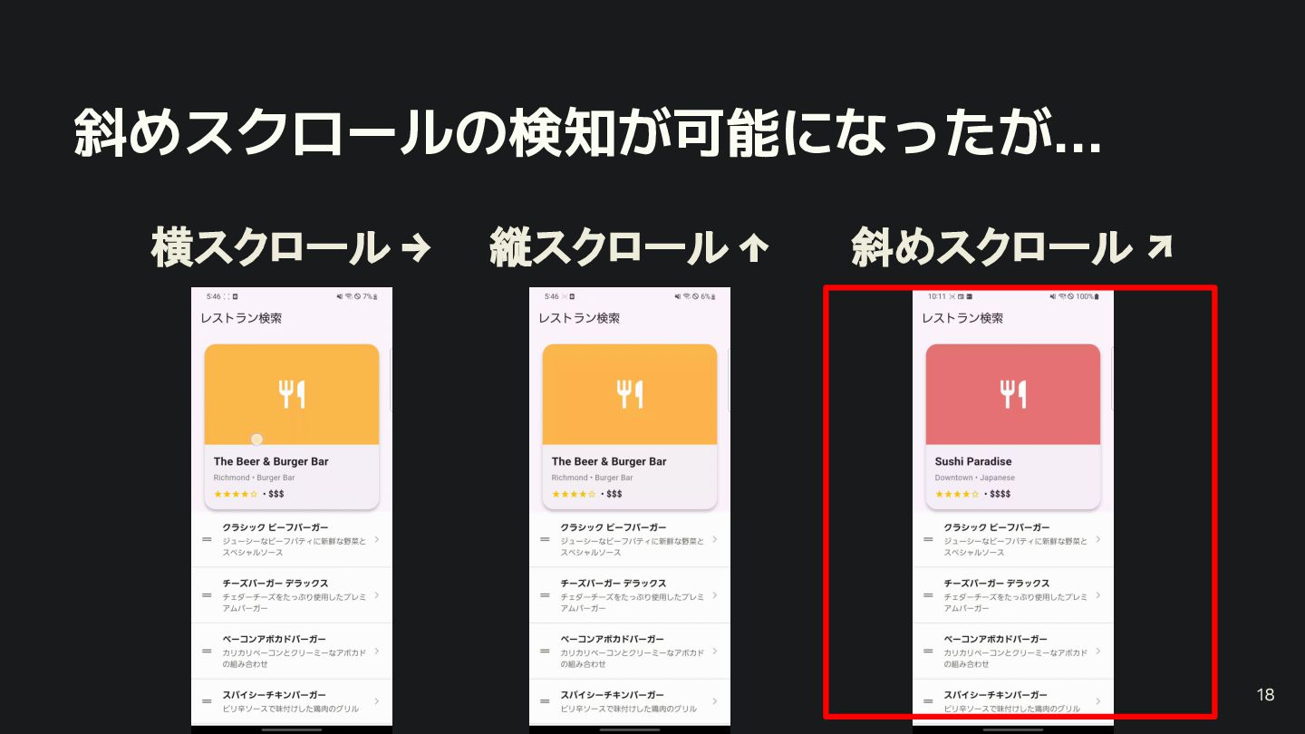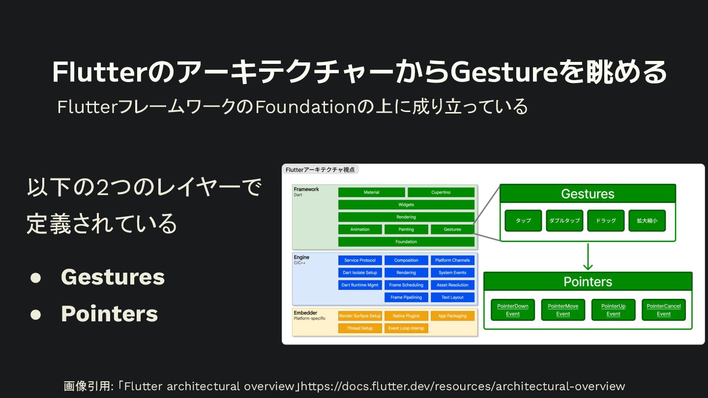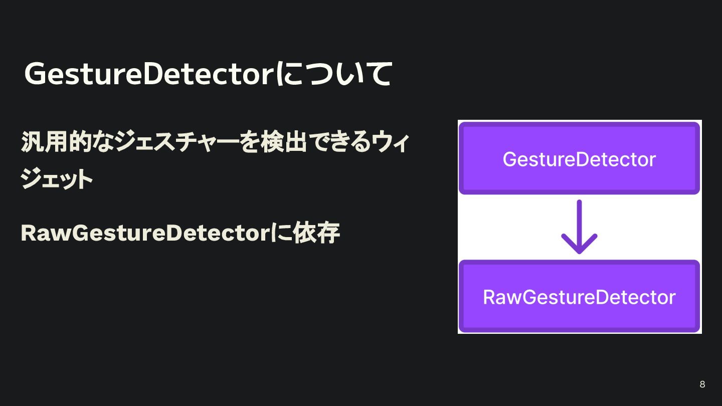 概要 Flutterの標準的なジェスチャー検出は強力ですが、特定の開発シーンでは複数のジェスチャーの競合や、ユーザー体験に合わせた独自動作の定義といった課題に直面します。 本セッションでは、こうした課題を踏まえて、Flutterアプリにおけるカスタムジェスチャーの実装例を軸に、Gestureの認識メカニズムや競合解決のアプローチなど、内部処理を含めて掘り下げて解説します。 - Flutterにおけるジェスチャー検出の基礎 - ジェスチャーの認識メカニズムと競合