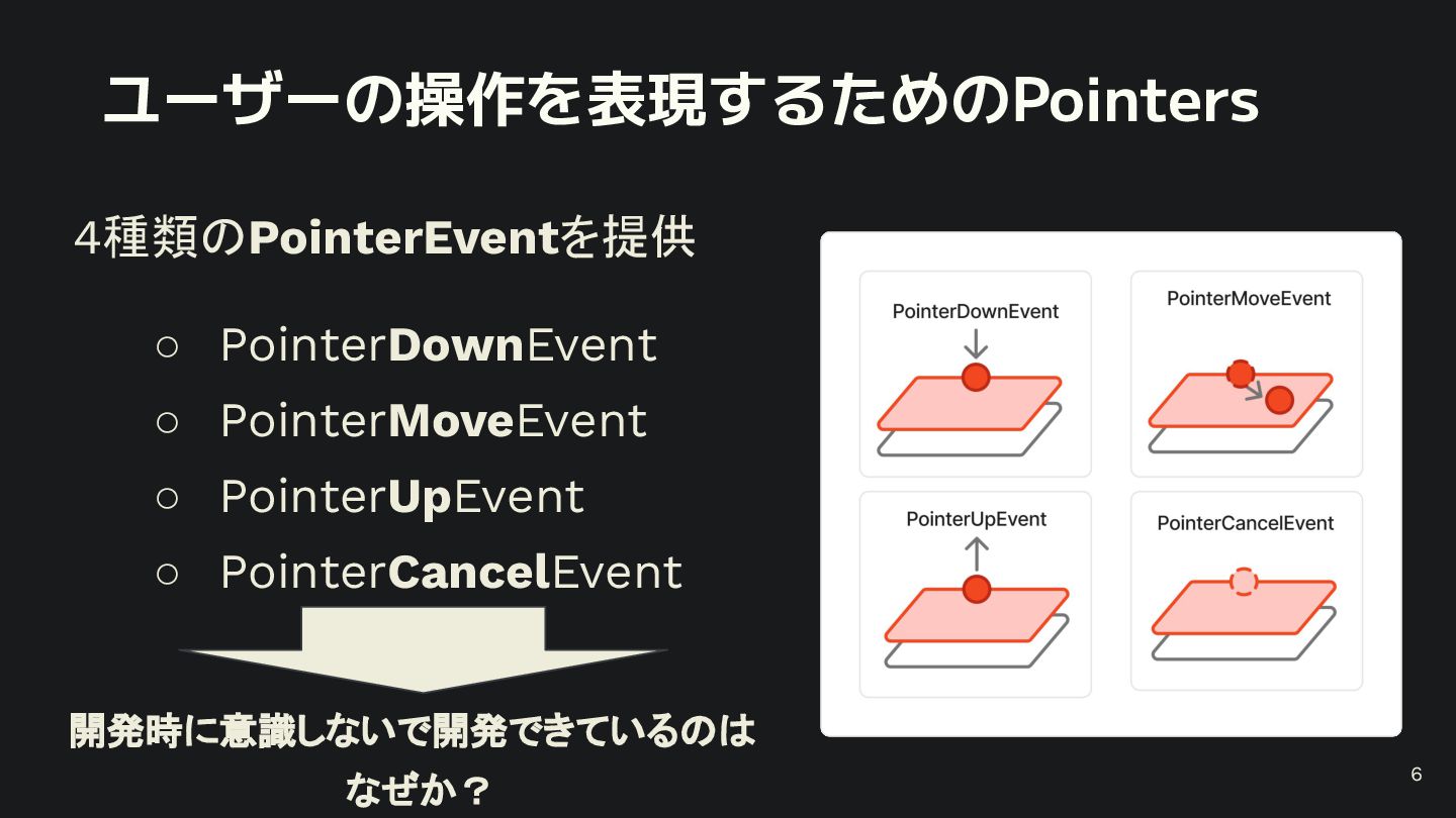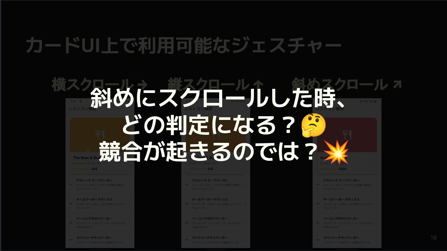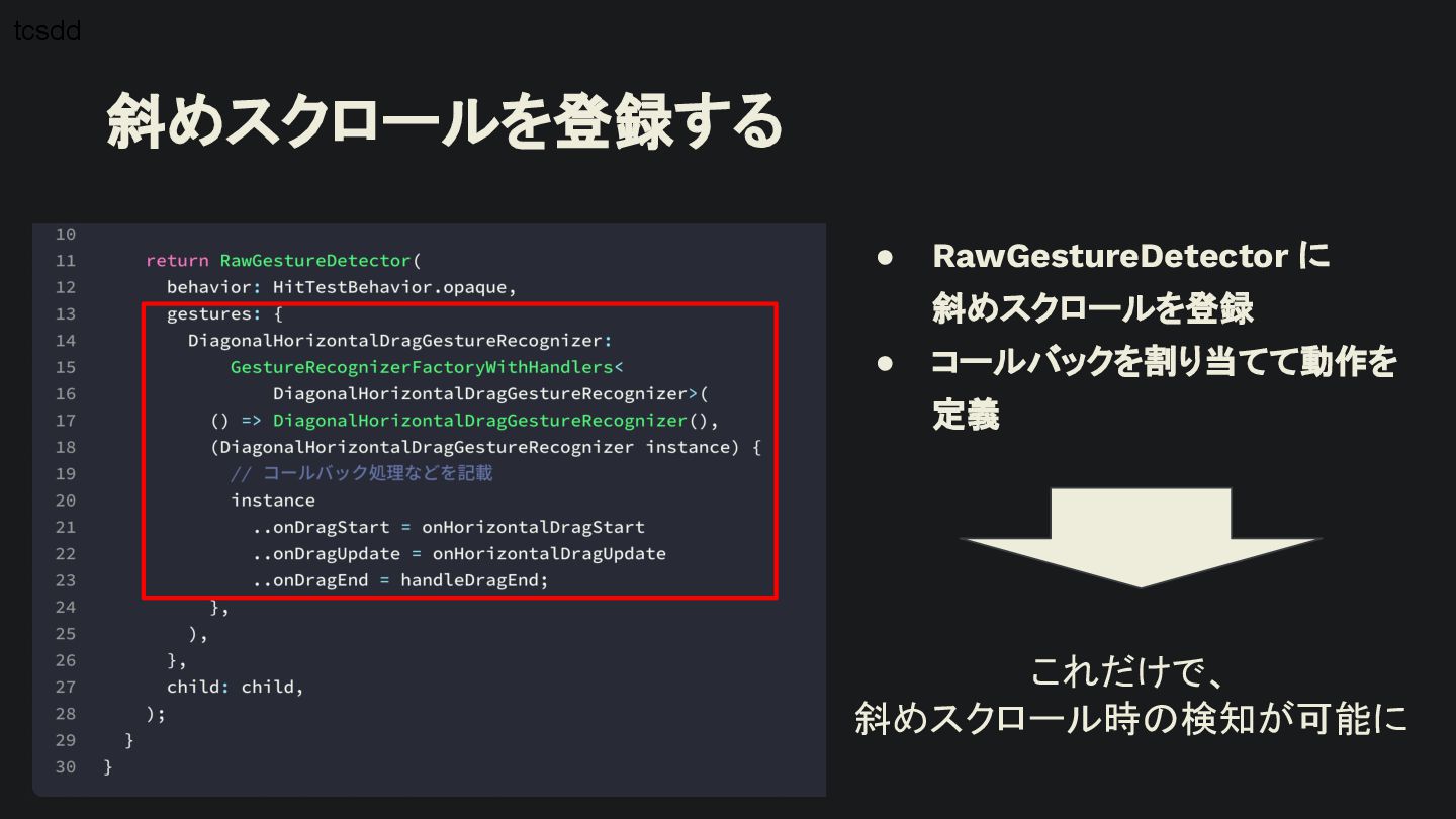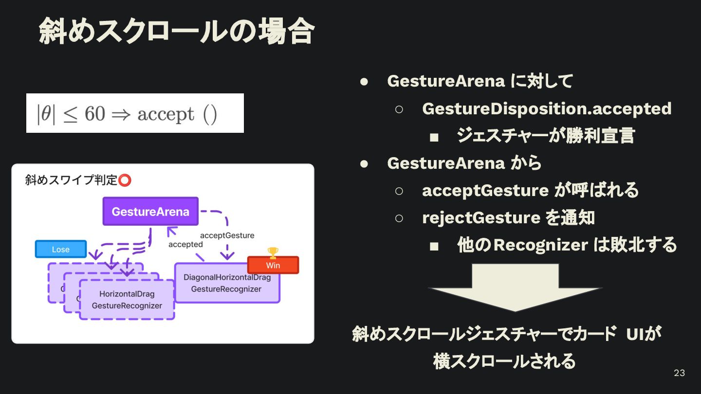 概要 Flutterの標準的なジェスチャー検出は強力ですが、特定の開発シーンでは複数のジェスチャーの競合や、ユーザー体験に合わせた独自動作の定義といった課題に直面します。 本セッションでは、こうした課題を踏まえて、Flutterアプリにおけるカスタムジェスチャーの実装例を軸に、Gestureの認識メカニズムや競合解決のアプローチなど、内部処理を含めて掘り下げて解説します。 - Flutterにおけるジェスチャー検出の基礎 - ジェスチャーの認識メカニズムと競合