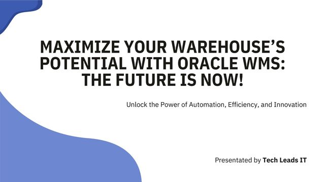 a comprehensive, scalable solution designed to optimize warehouse operations by automating workflows, increasing inventory accuracy, and enhancing order fulfillment WHY ORACLE WMS? With real-time visibility, advanced automation, and seamless integration, Oracle WMS is transforming the way businesses manage their warehouses, making operations faster, smarter, and more cost-effective