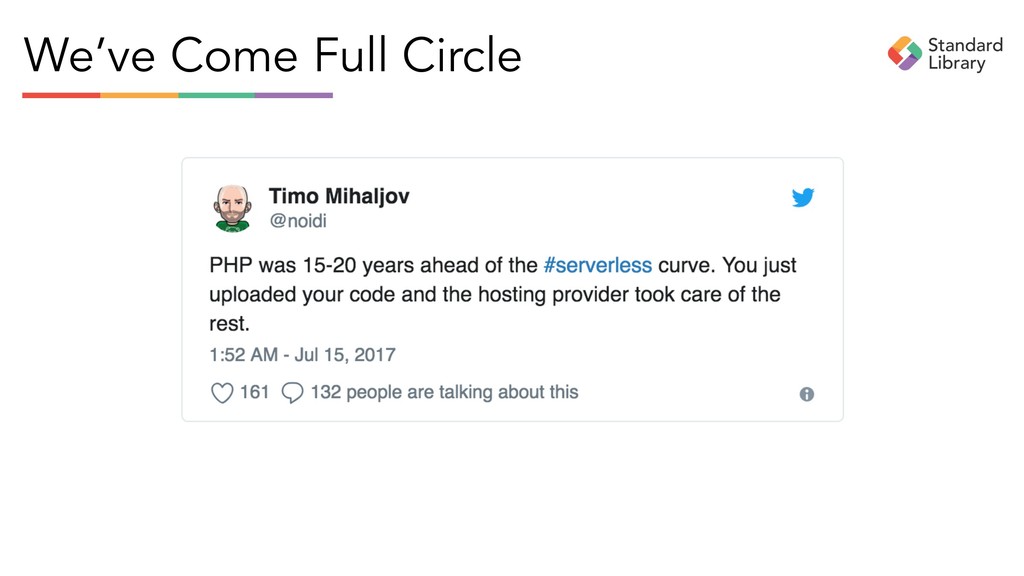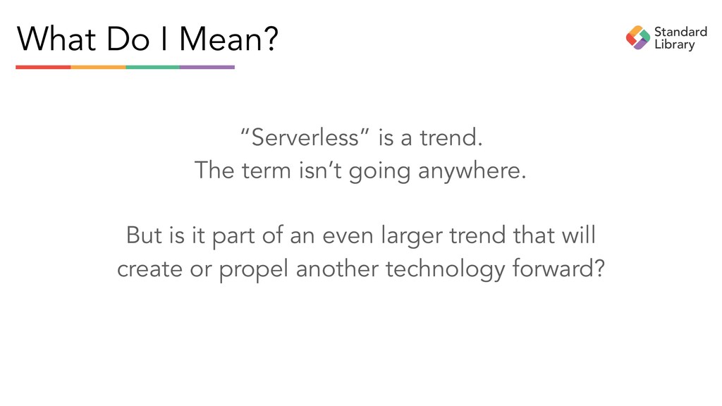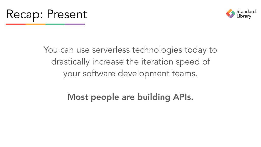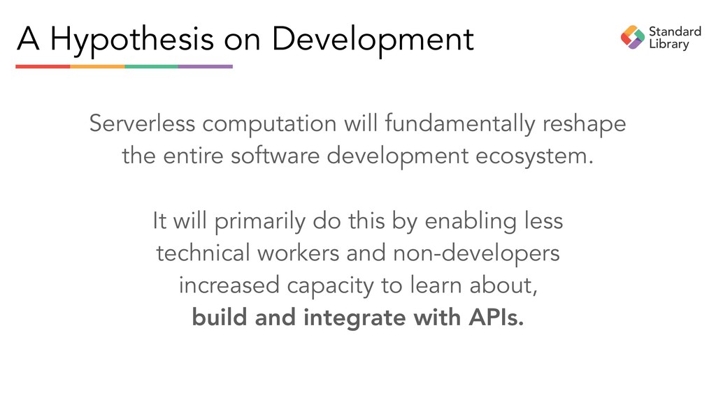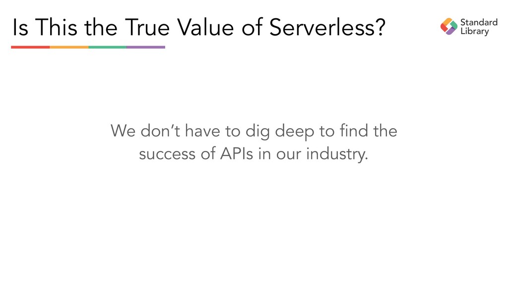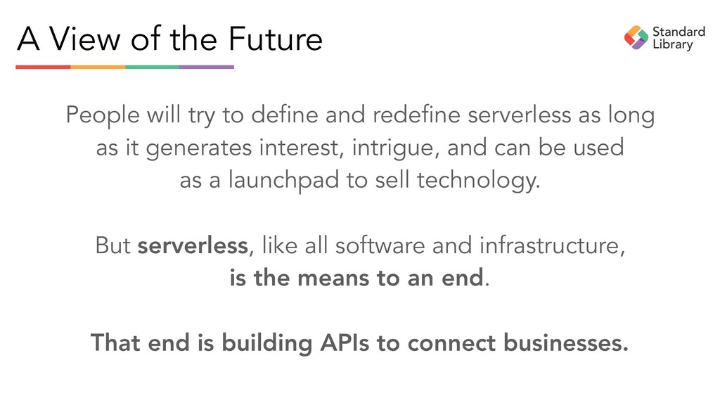 and redefine serverless as long as it generates interest, intrigue, and can be used as a launchpad to sell technology. But serverless, like all software and infrastructure, is the means to an end. That end is building APIs to connect businesses.