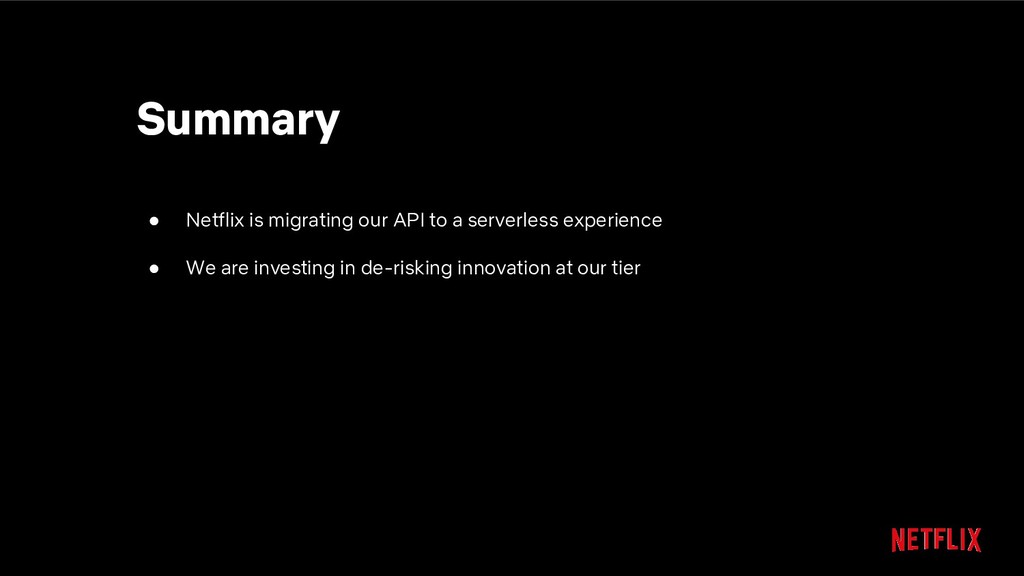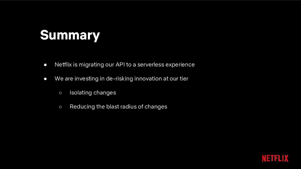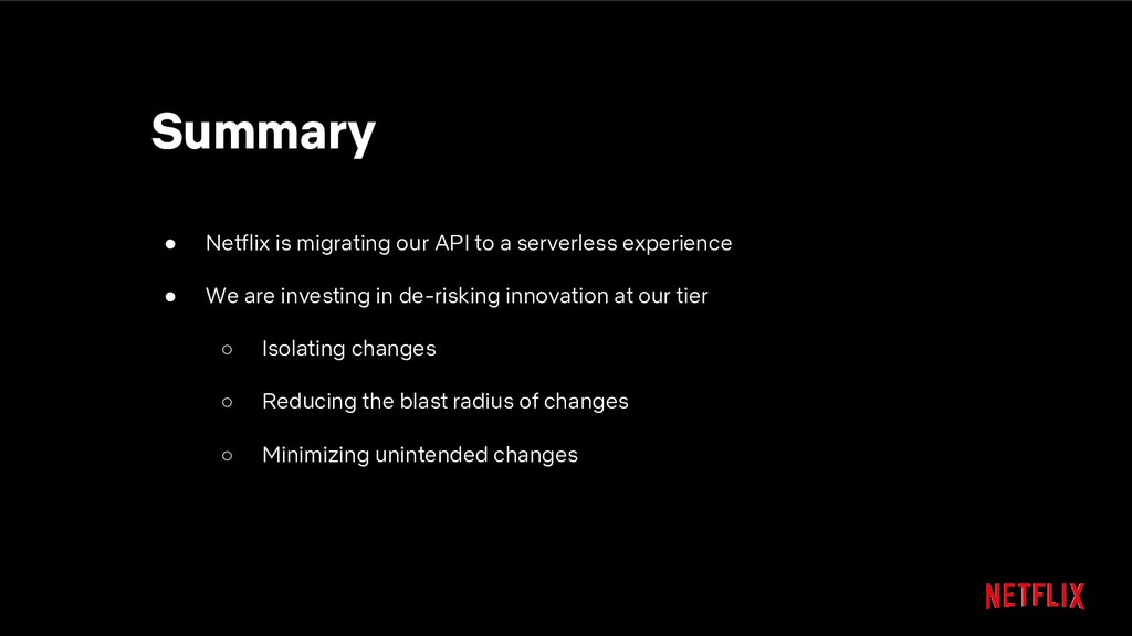 our API to a serverless experience • We are investing in de-risking innovation at our tier ◦ Isolating changes ◦ Reducing the blast radius of changes ◦ Minimizing unintended changes