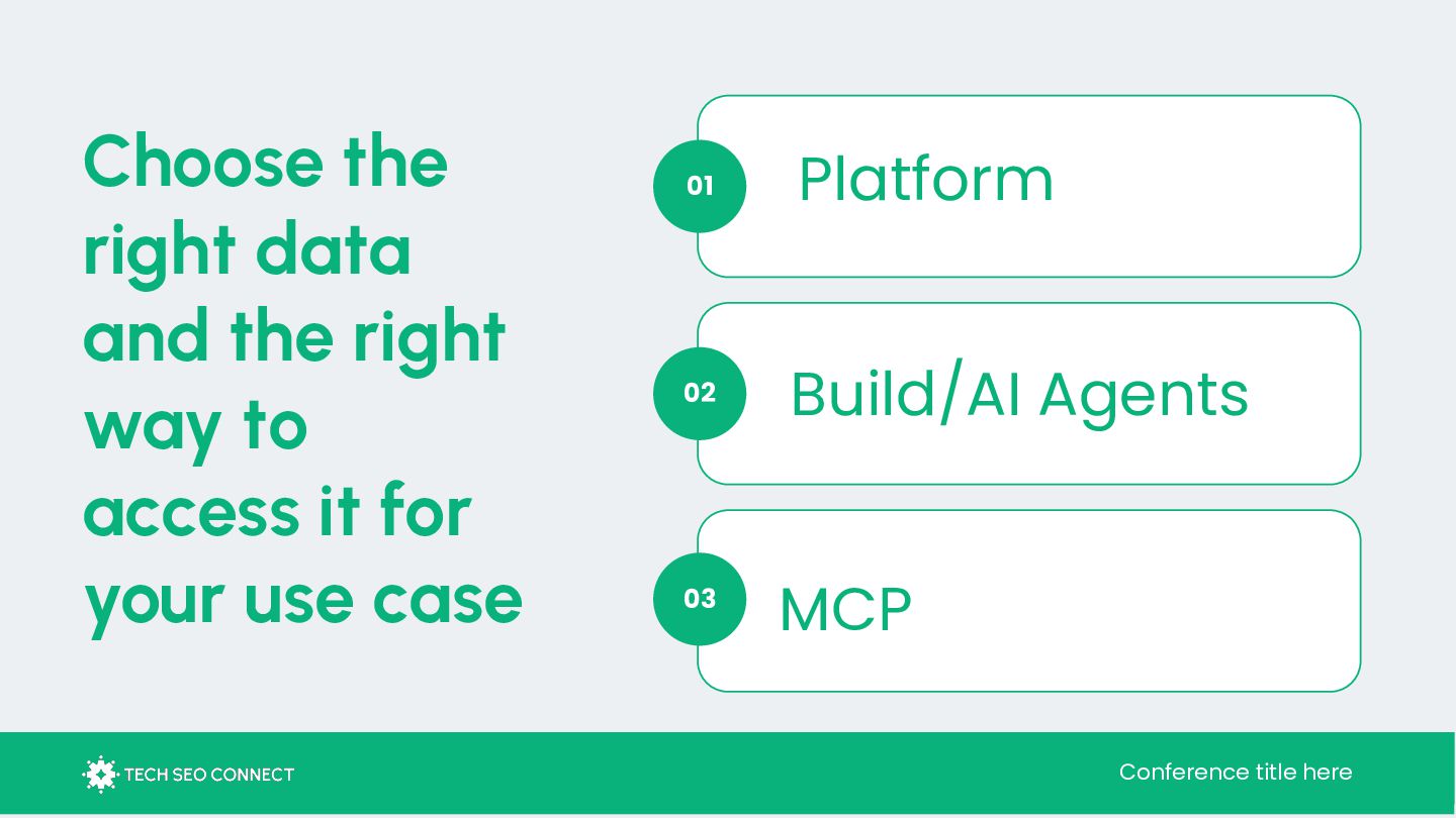 it for your use case Platform Conference title here 01 02 03 Build/AI Agents MCP