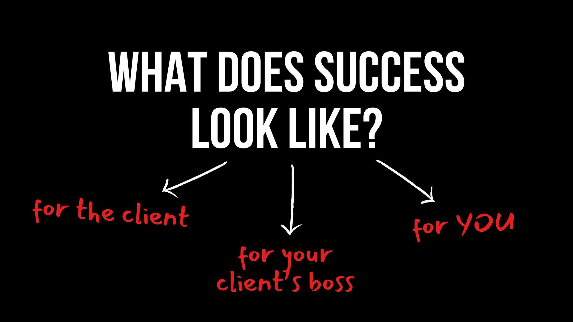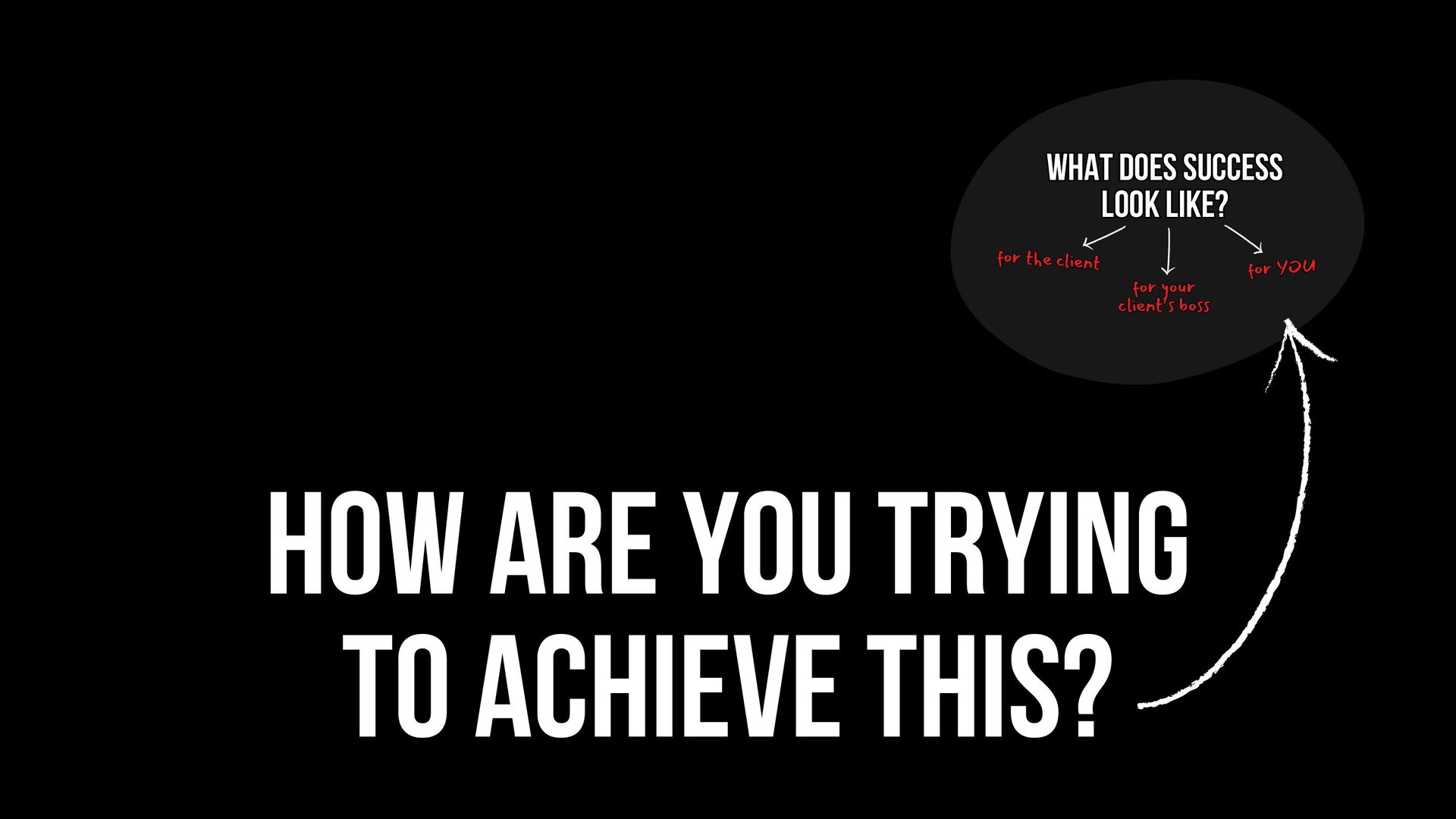 trying to achieve this? what does success look like? what does success look like? for the client for the client for your client’s boss for your client’s boss for YOU for YOU