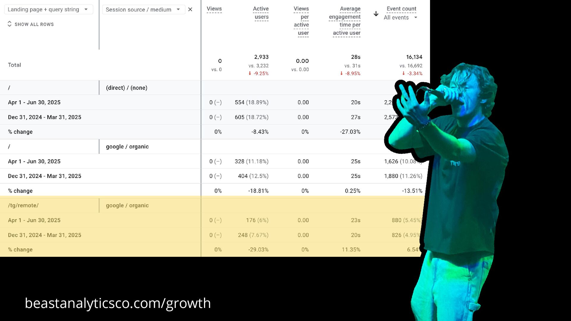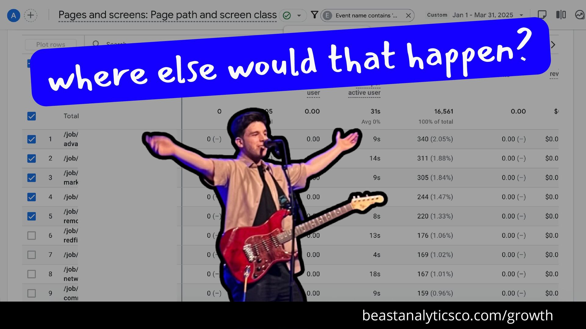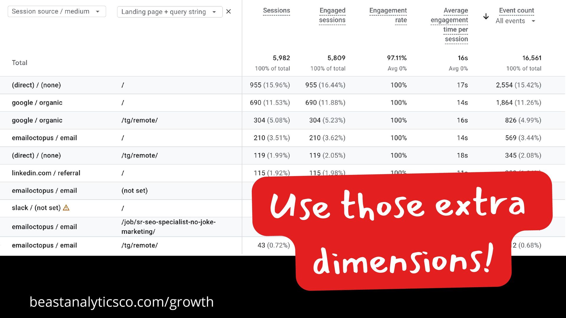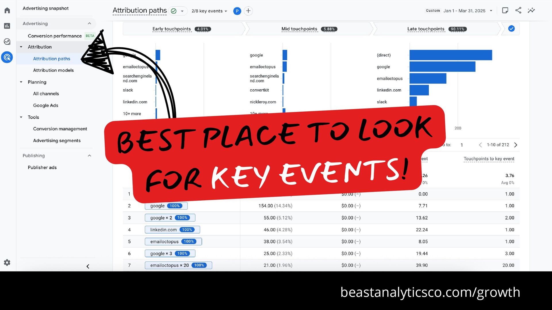conversions happen? ON SITE FACTORS source, medium, campaign, etc landing page page referrer path exploration where did the user come from? beastanalyticsco.com/growth