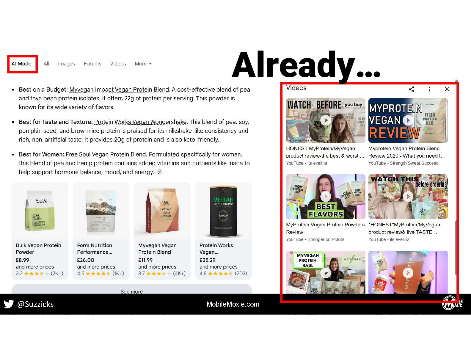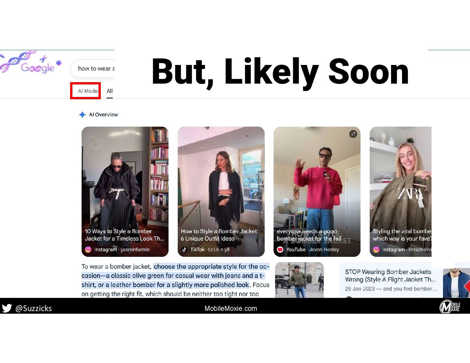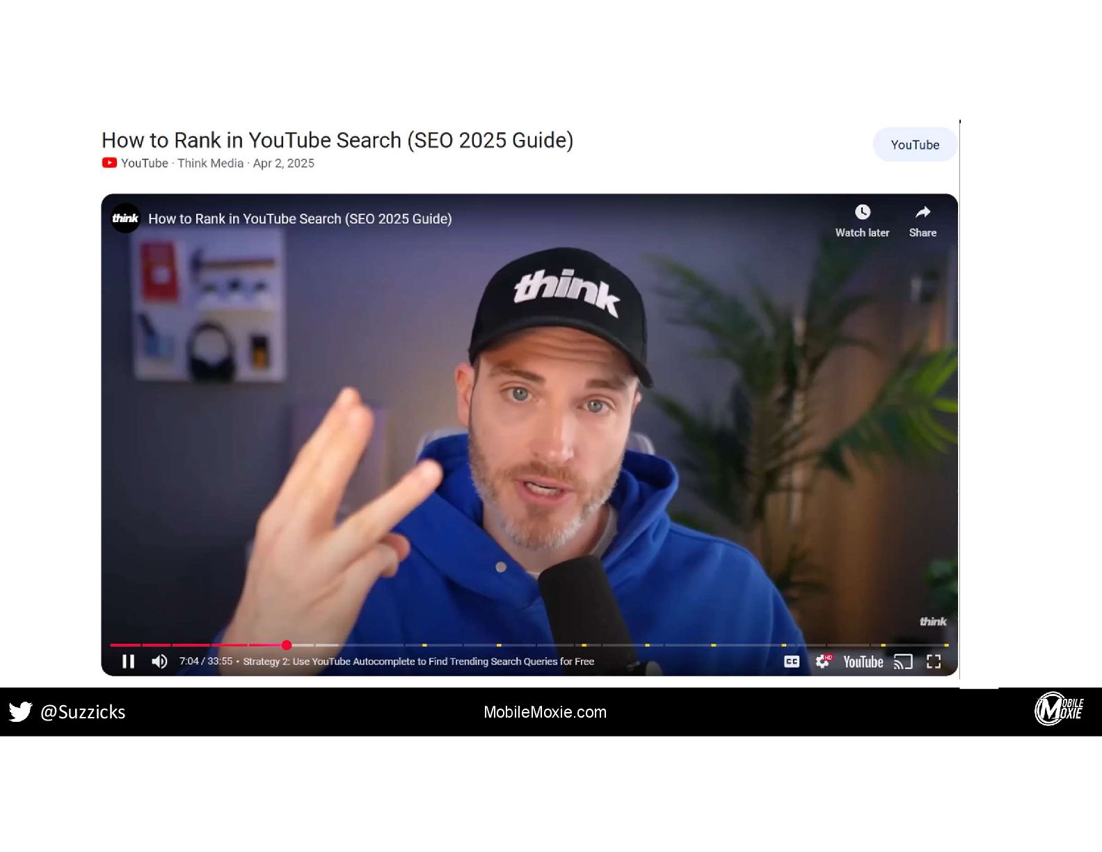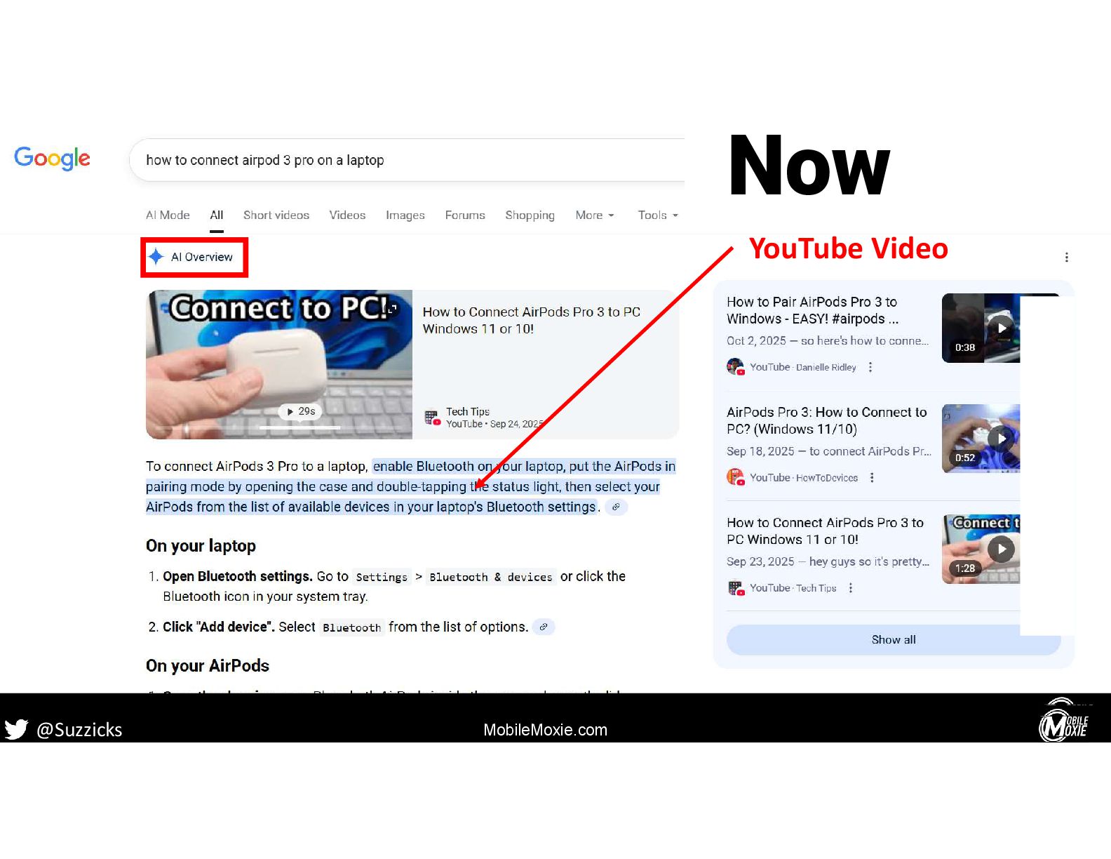 can process the titles, comments & transcripts that go with the video • The videos can rank & drive branding and conversion on their own, in the various platforms & in Google • The videos are already processed and ranked by YouTube, Google & Bing, and LLMs just use that data MobileMoxie.com @Suzzicks