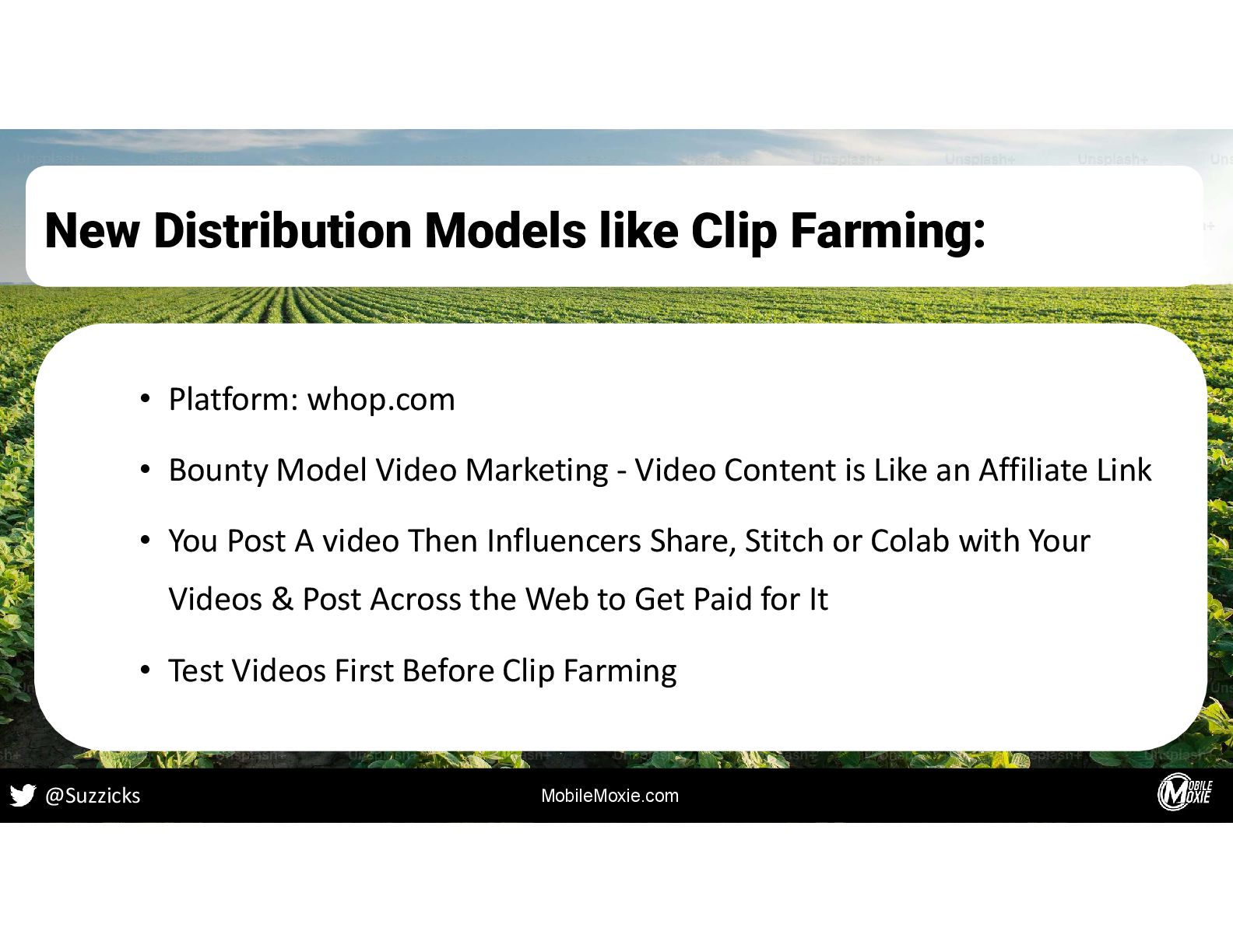15. MobileMoxie.com @Suzzicks New Distribution Models like Clip Farming: • Platform: