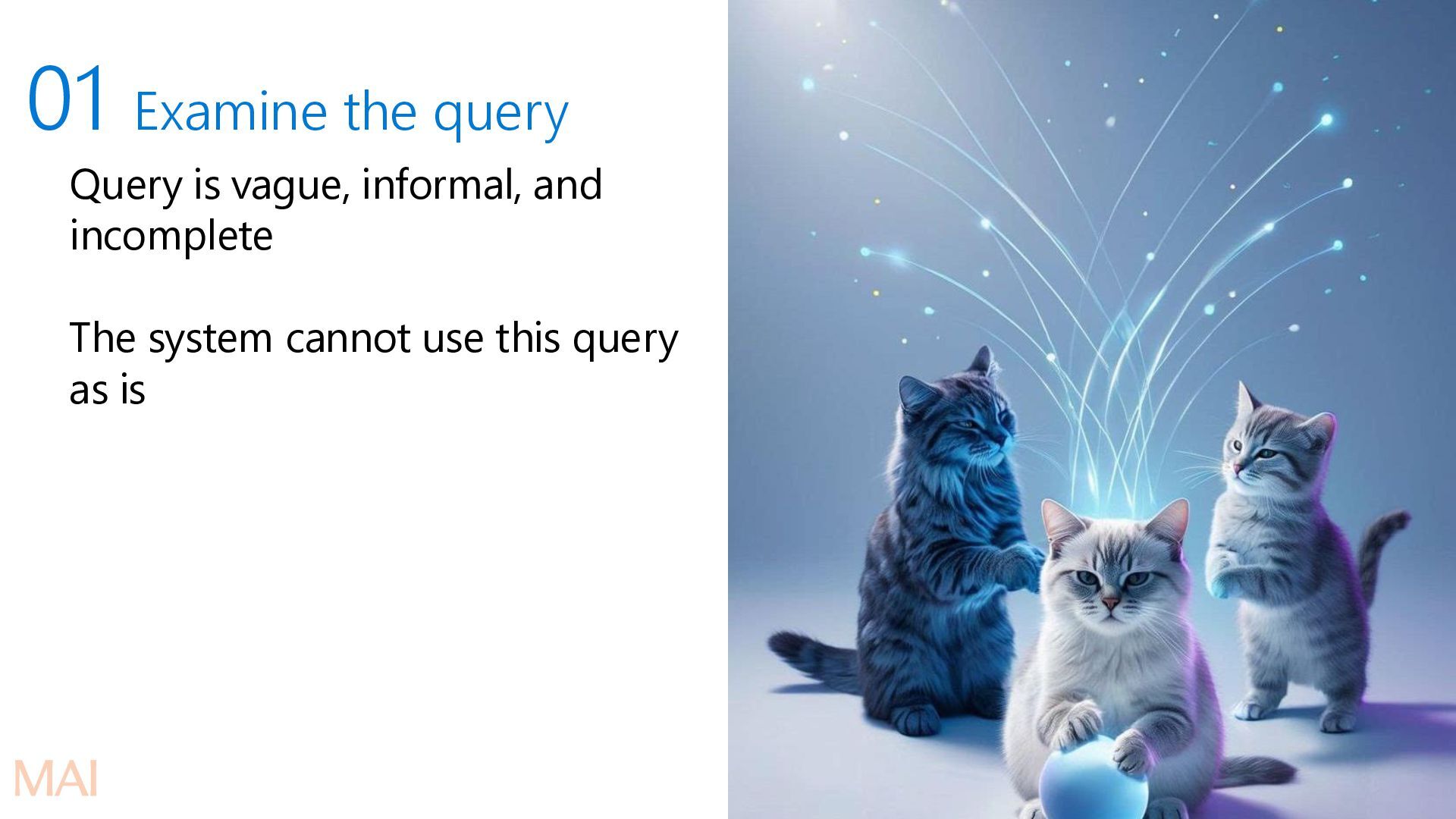 submits a query or a task Retrieval (multi-source) Relevant content is fetched from available sources (usually the index). Safety starts even at this stage. Ranking Retrieved content scored & ordered by relevance, quality, authority, freshness Evidence synthesis Top-ranked items are merged, de-duplicated, summarized, and structured into clean evidence blocks. Safety filtering Evidence is checked against safety, compliance, and policy constraints (PII, harmful content, etc.)