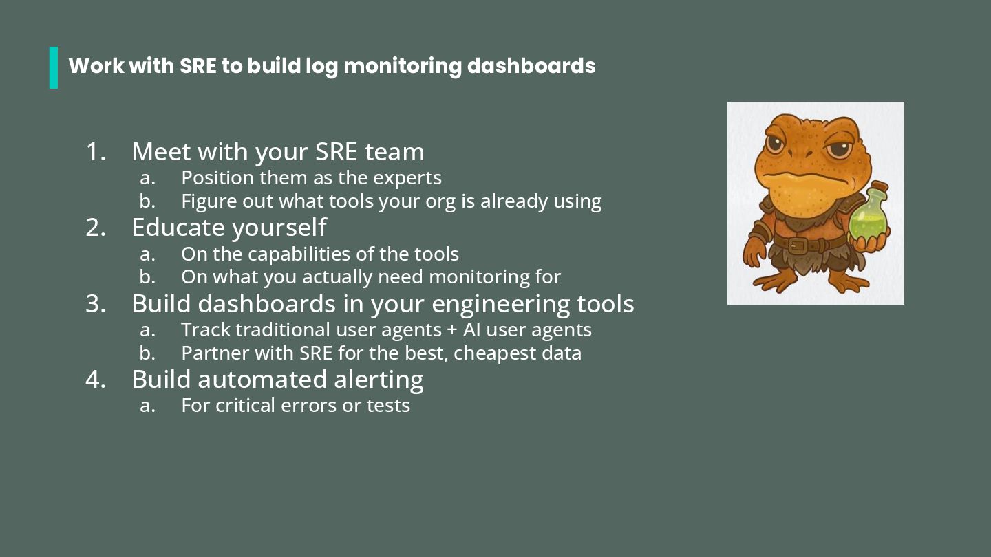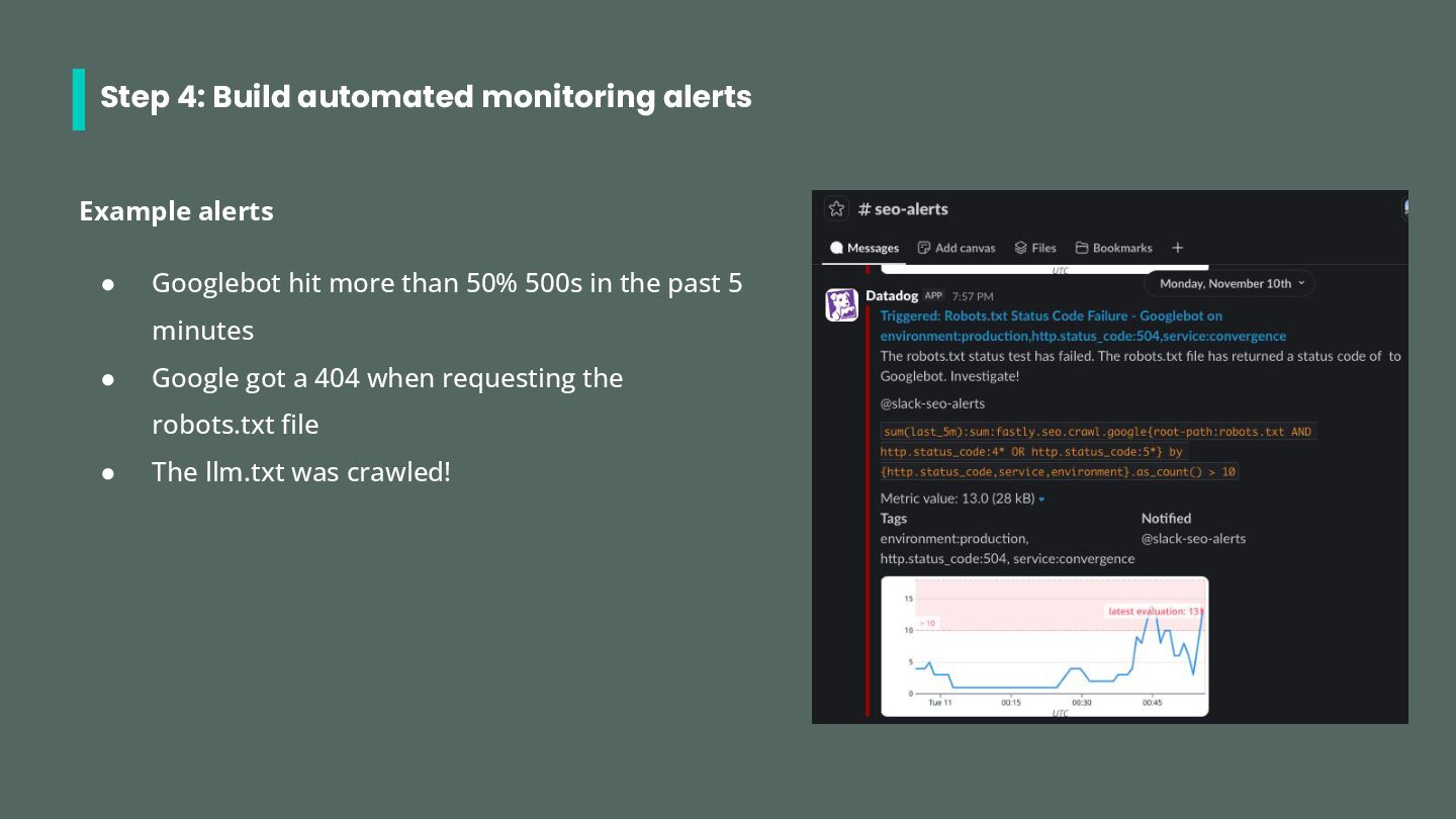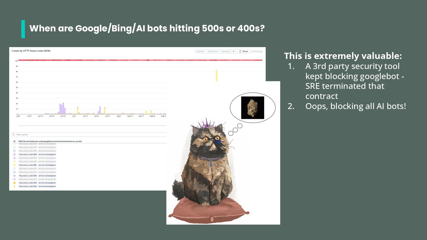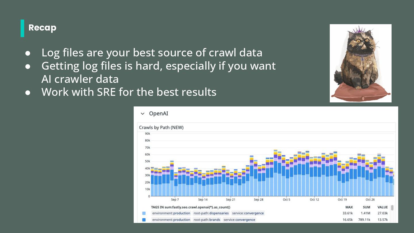 • Search Engine bots: googlebot, bingbot (possibly others) • ChatGPT bots: gptbot, chatgpt-user, oai-searchbot • Perplexity bots: perplixitybot, perplexity-user • Claude bots: claudebot, claude-searchbot, claude-user • Other: ccbot (common crawl) Check out https://dejan.ai/blog/ai-bots/