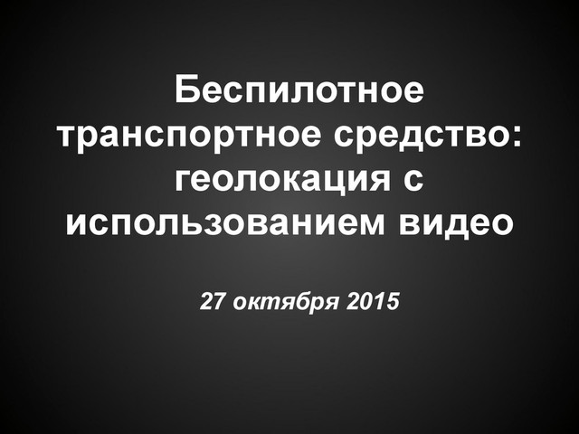 В этом докладе я расскажу про архитектуру этого аппаратно-программного комплекса и в частности про систему определения позиции по видео, над которой я работал»