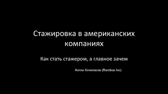 29 апреля 2016. Стажировки в американских IT-компаниях. Как стать стажером, а главное зачем (Антон Кочепасов, Rambus Inc (США))