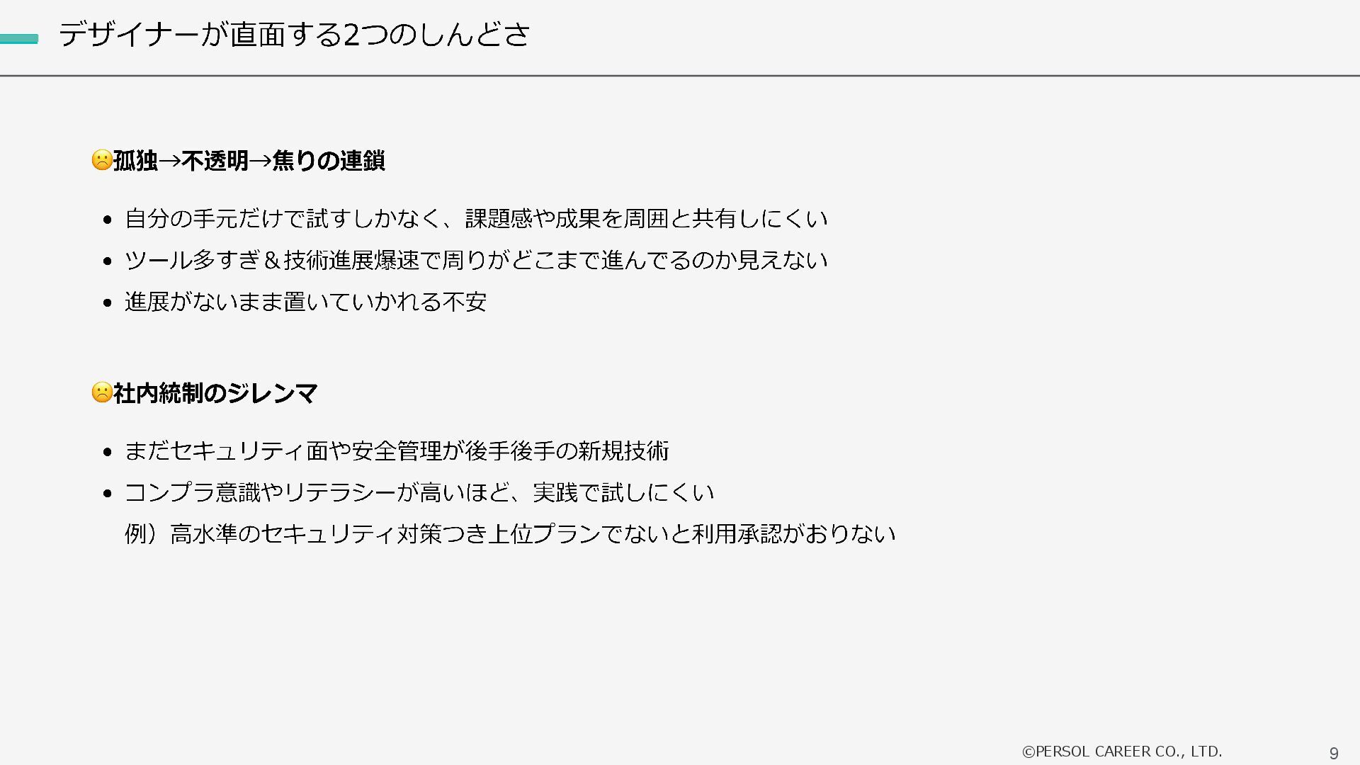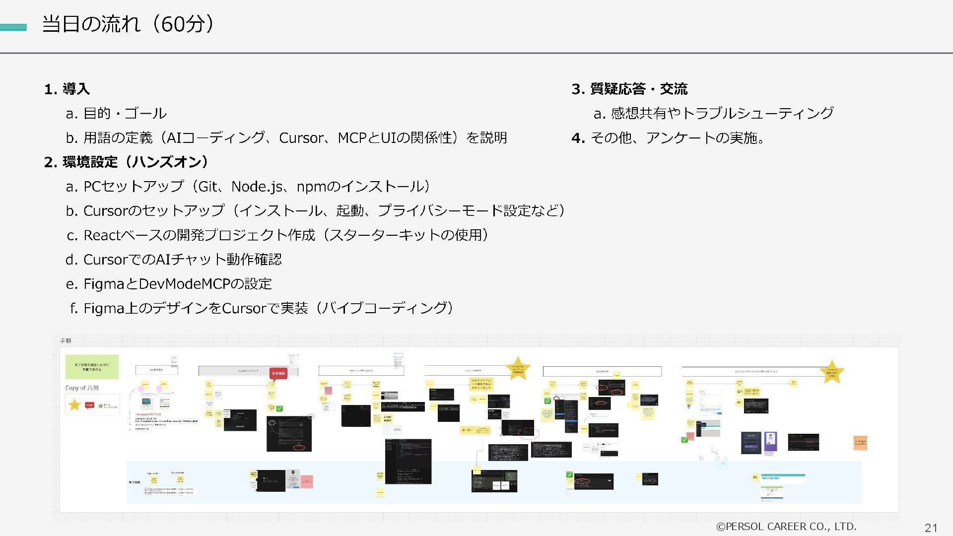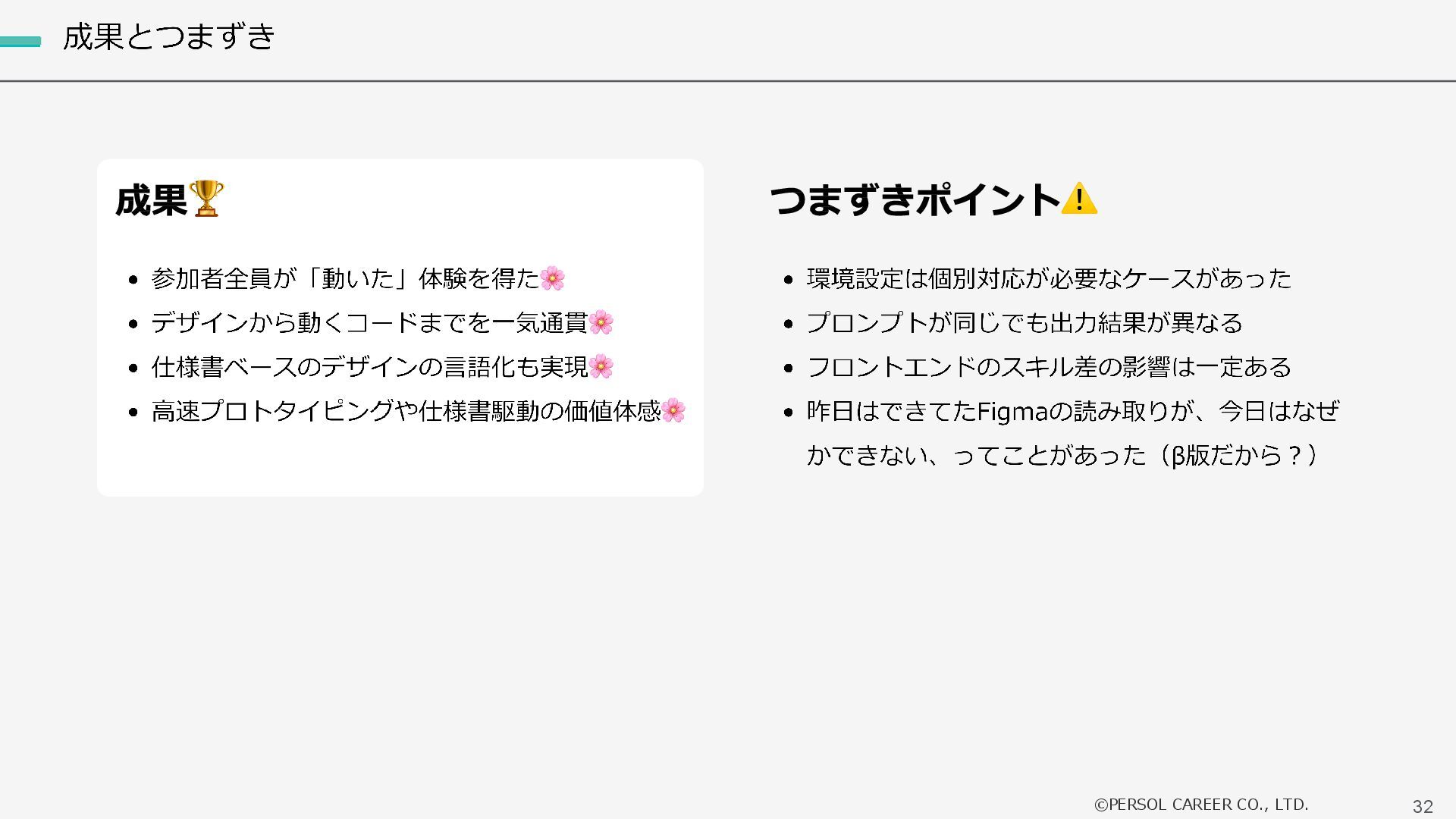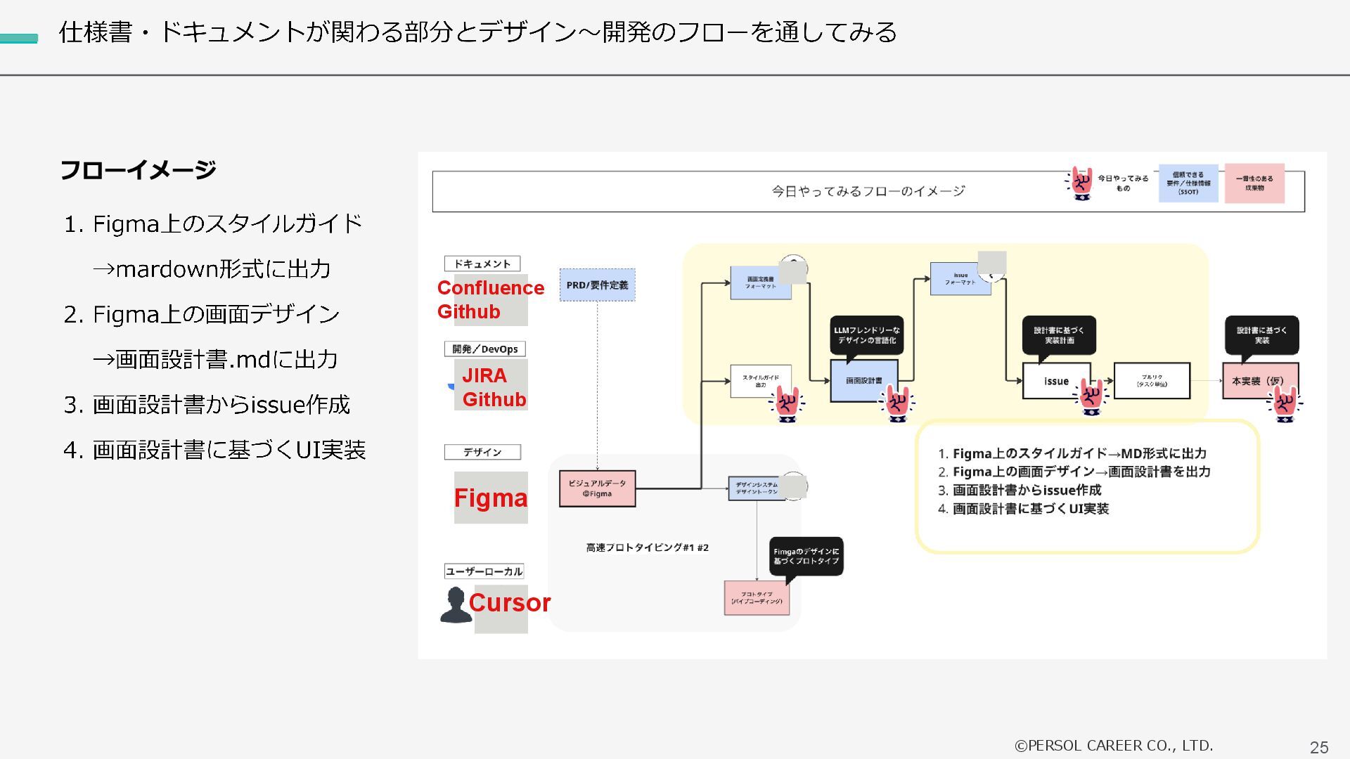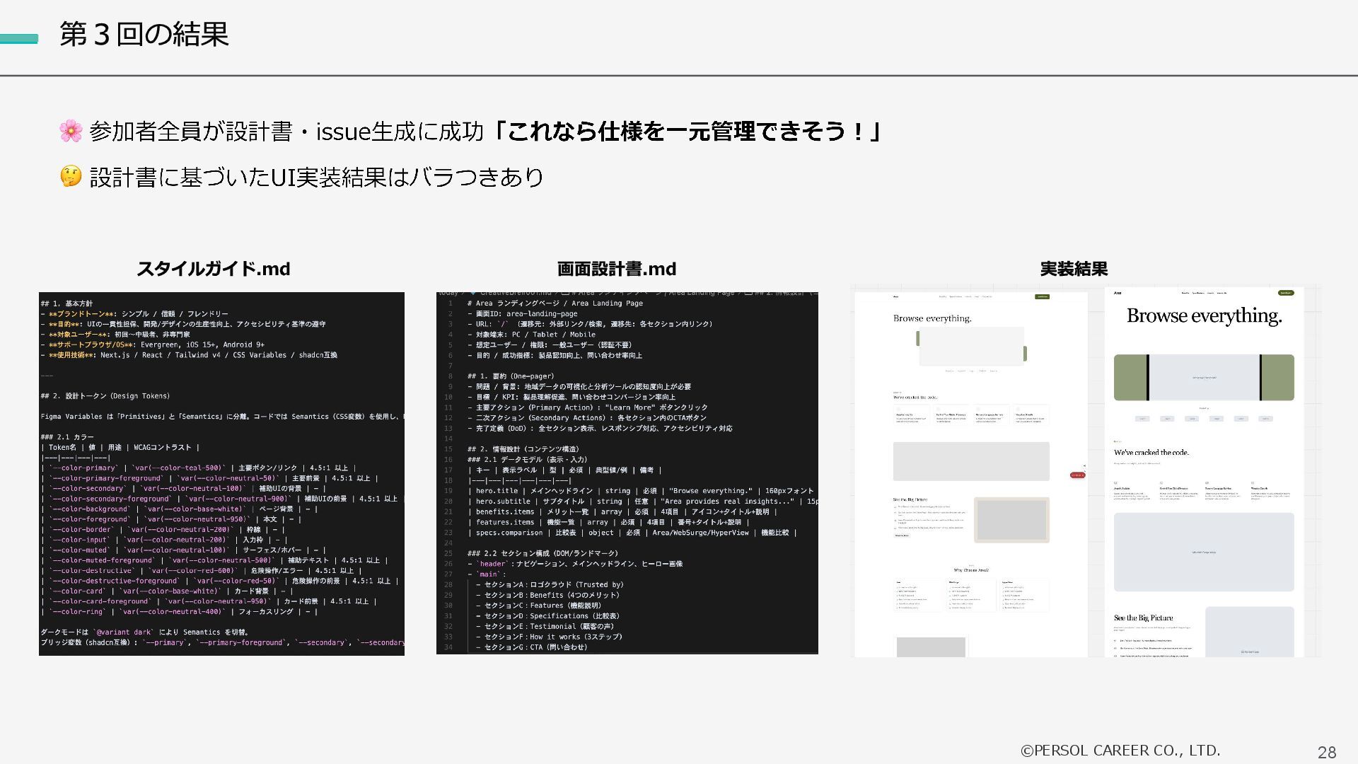 UI/UXデザインにおける生成AI活用を加速させるため、Figma×MCP×Cursorを用いたハンズオンを実施しました。デザインから実装までを一気通貫で体験し、心理的・制度的な制約を越えるには“小さく試せる場”と“専門性の持ち寄り”が重要だと再確認。協働を通じて得られた学びから、新しいデザイン実装フローの可能性を探っていく取り組みです。